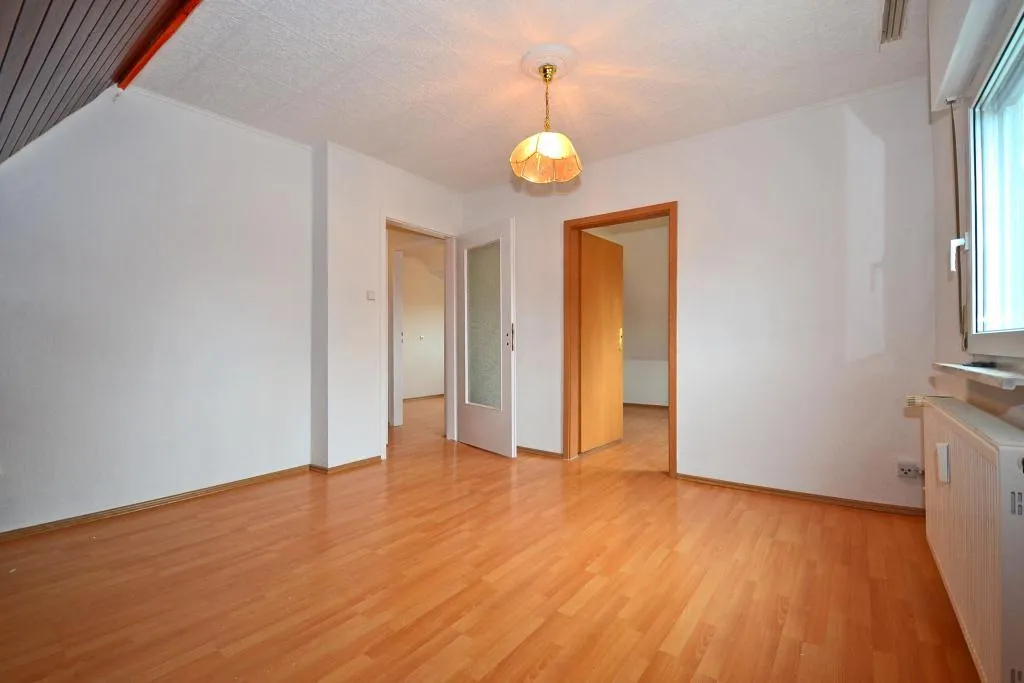 Diese frisch renovierte 3-Zimmer-Dachgeschoss-Wohnung mit zusätzlichem Hobbyraum befindet sich im 2. Obergeschoss eines freistehenden 3-Familienhauses.