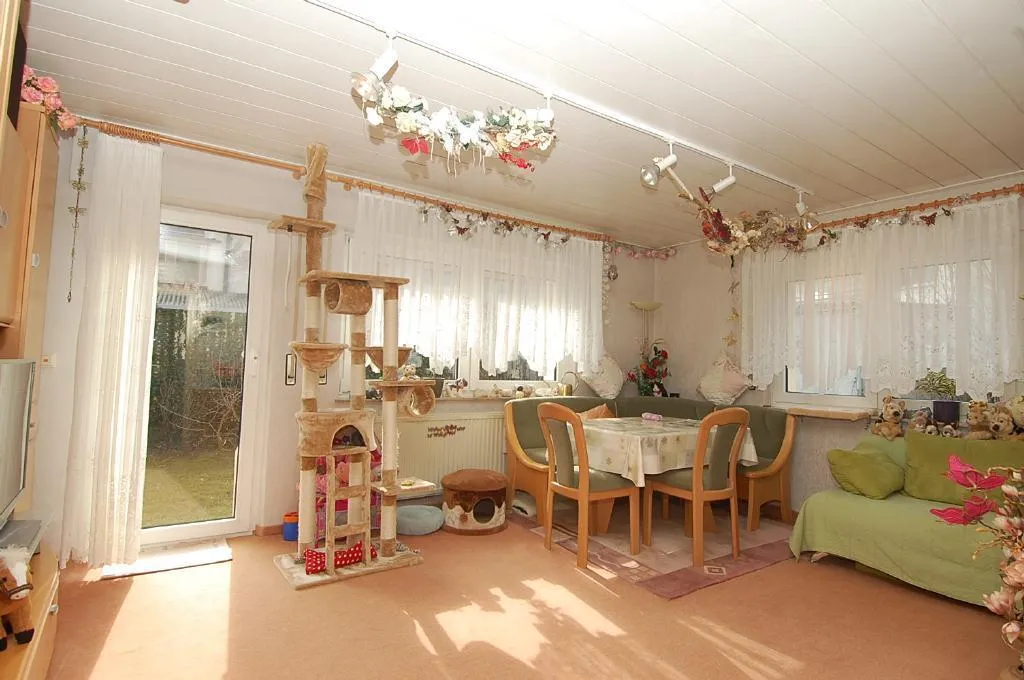 Vom sonnigen Wohnzimmer im Erdgeschoss haben Sie über vier Stufen einen direkten Zugang in den Garten.