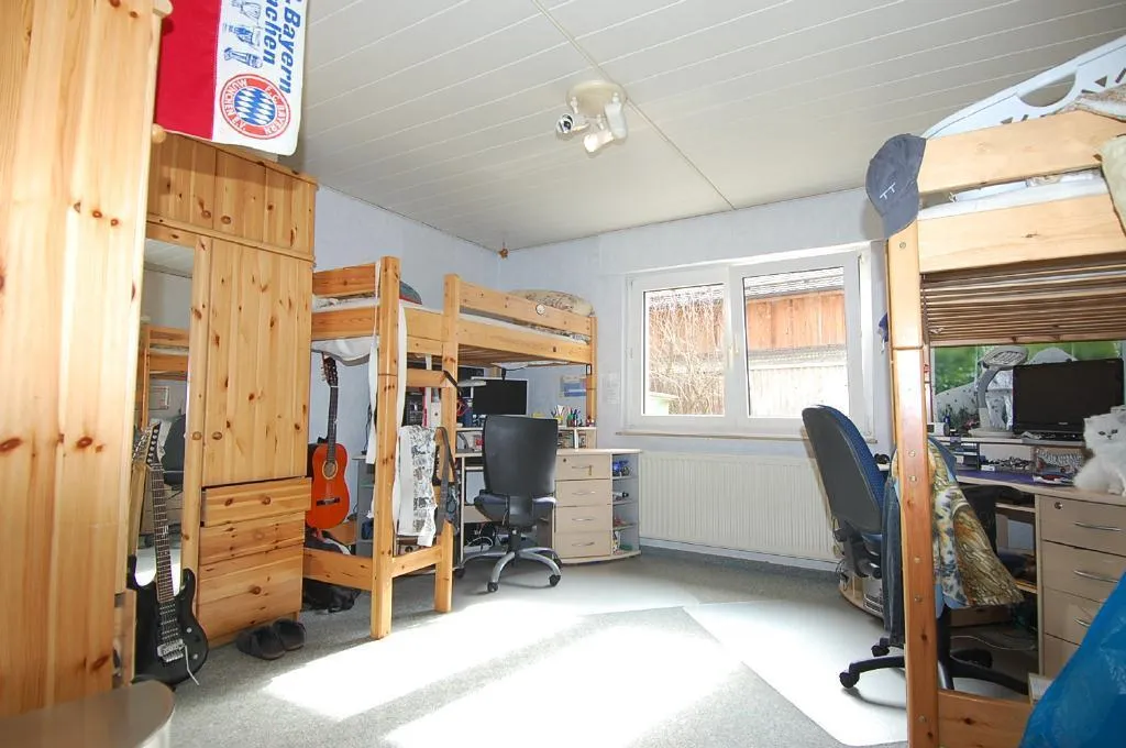 Die Wohnung im Erdgeschoss ist vermietet. Bei einer Eigenbedarfskündigung gilt eine 9-monatige Kündigungsfrist. Alternativ kann mit dem Mieter über eine Mietaufhebungsvereinbarung verhandelt werden.