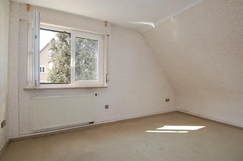 Die Wohnung im Obergeschoss ist frei. Hier sind Renovierungsarbeiten nötig.