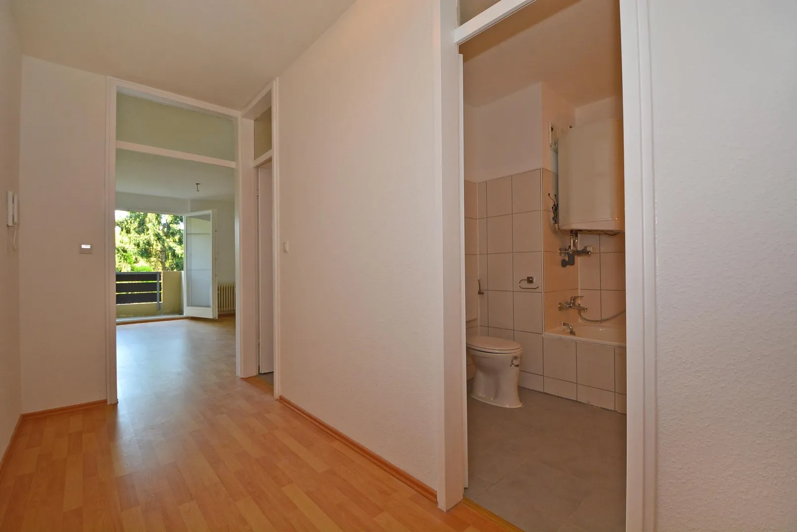 Vom Wohnungseingang gelangen Sie in den Flur, von dem aus alle Räume zugänglich sind.