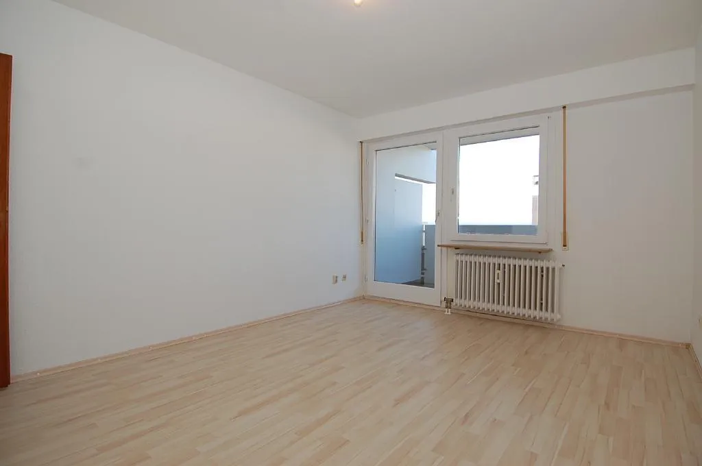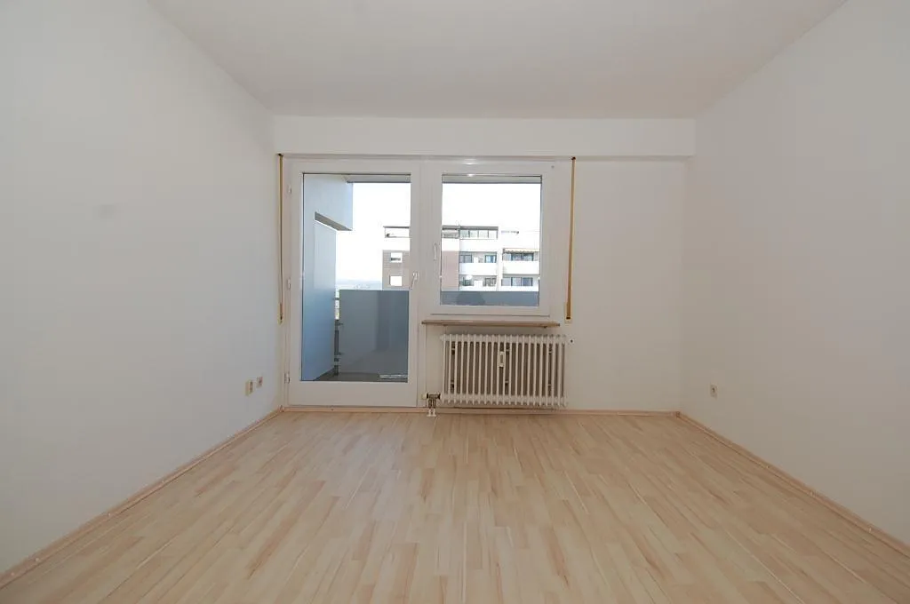 Das Wohn-/Schlafzimmer ist nach Westen ausgerichtet. Von hier aus gelangen Sie auf den ca. 6 m² großen und überdachten West-Balkon.