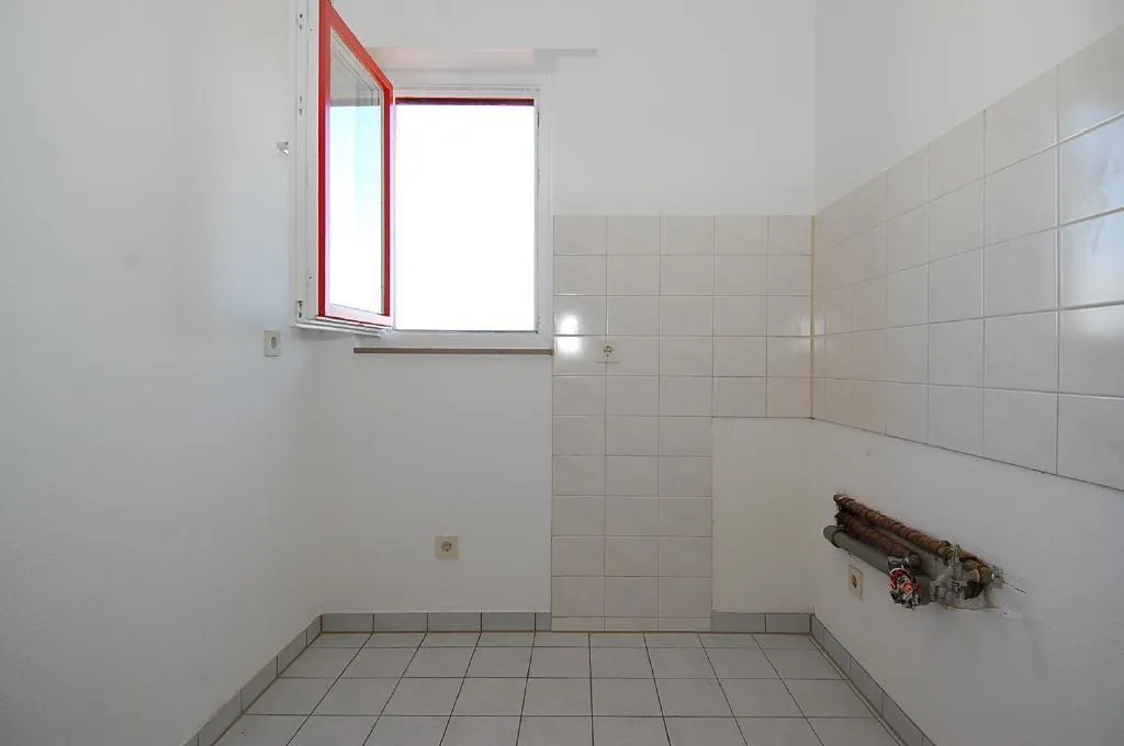 Die Küche ist mit Fliesenboden ausgestattet. Hier befindet sich auch der Waschmaschinenanschluss.