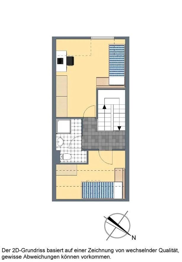Im Obergeschoss befinden sich 2 Zimmer und ein Badezimmer. Die Zimmer sind mit Laminatböden ausgestattet.
