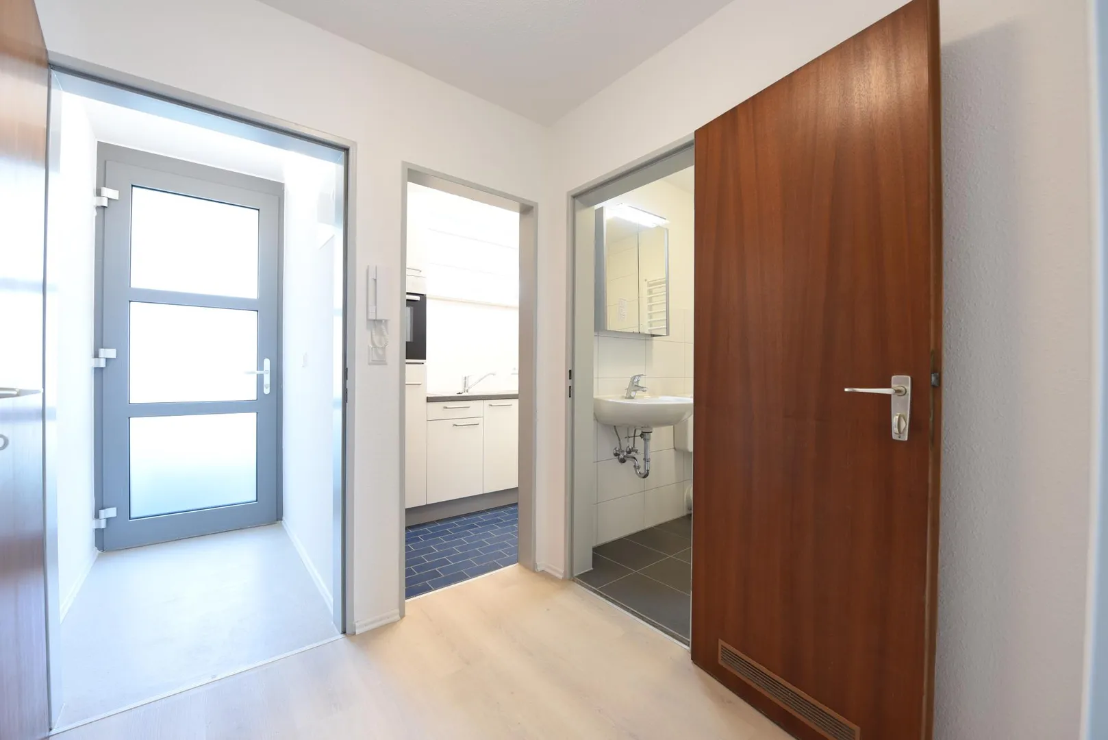 Im Zimmer und im Flur wurde ein neuer Vinyl-Design-Boden verlegt. Das Bad wurde ebenfalls komplett neu renoviert.