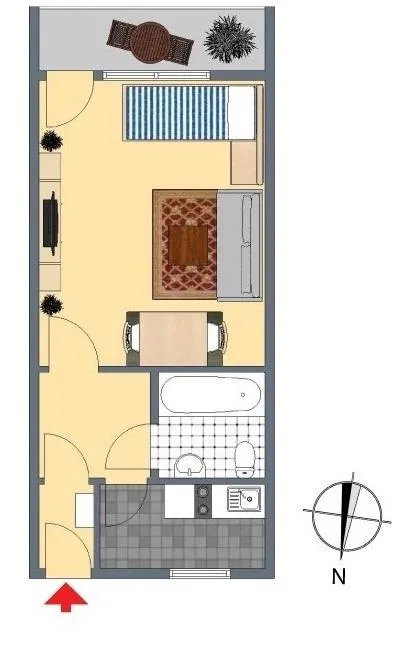Der ca. 4 m² große und überdachte Süd-Balkon ist vom Zimmer (Südausrichtung zum Innenhof).