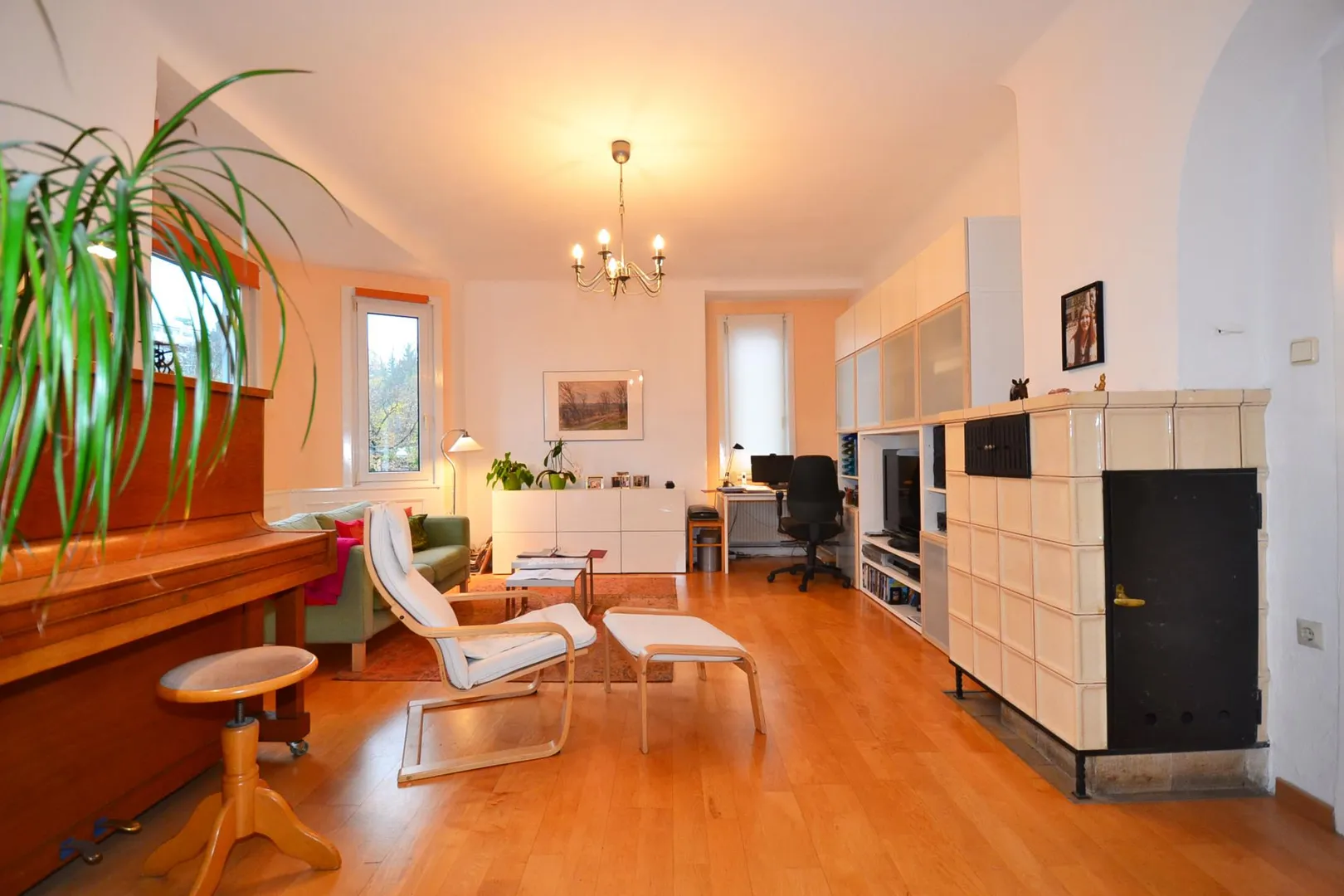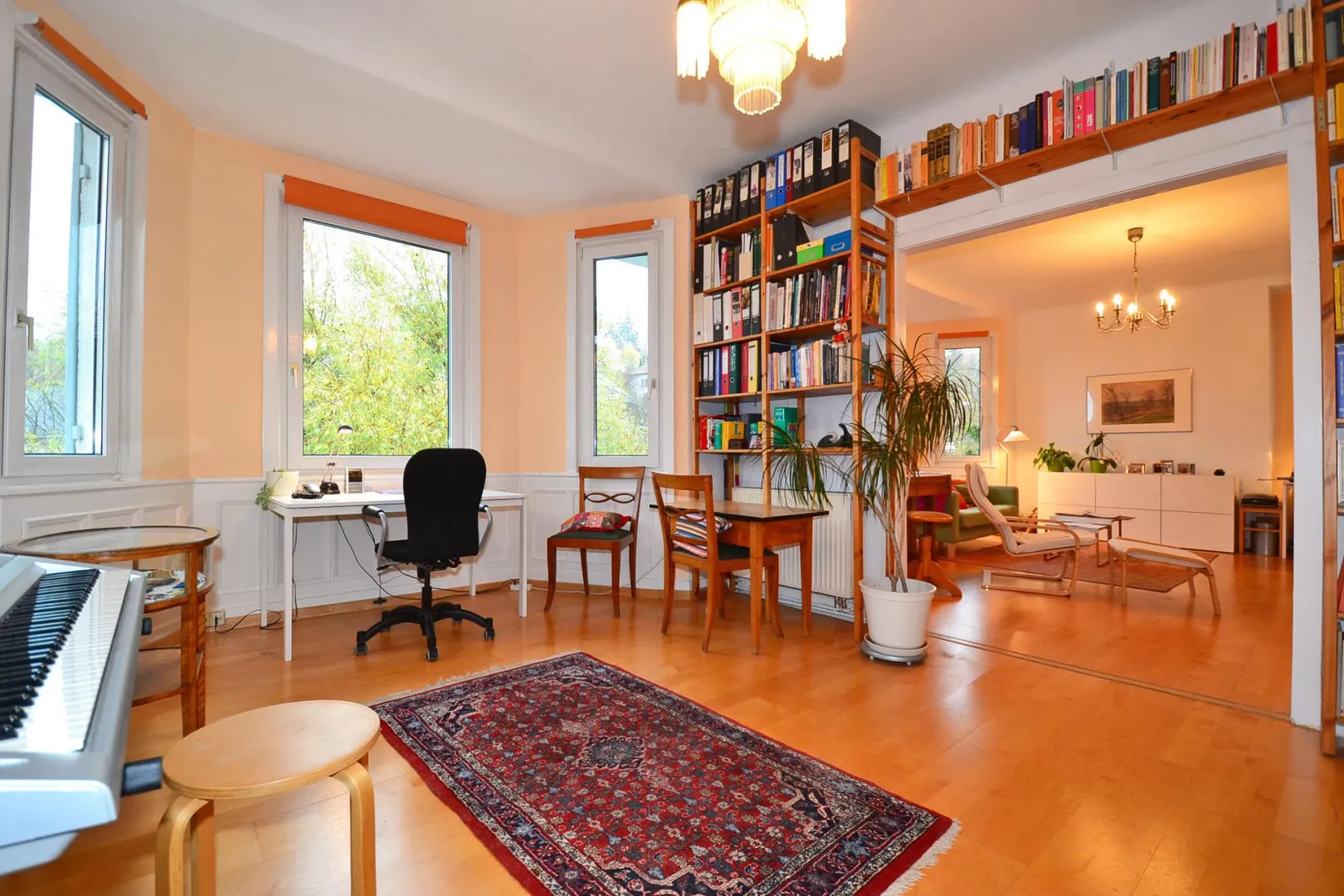 Das Wohnzimmer und das Arbeitszimmer sind nach Osten ausgerichtet.