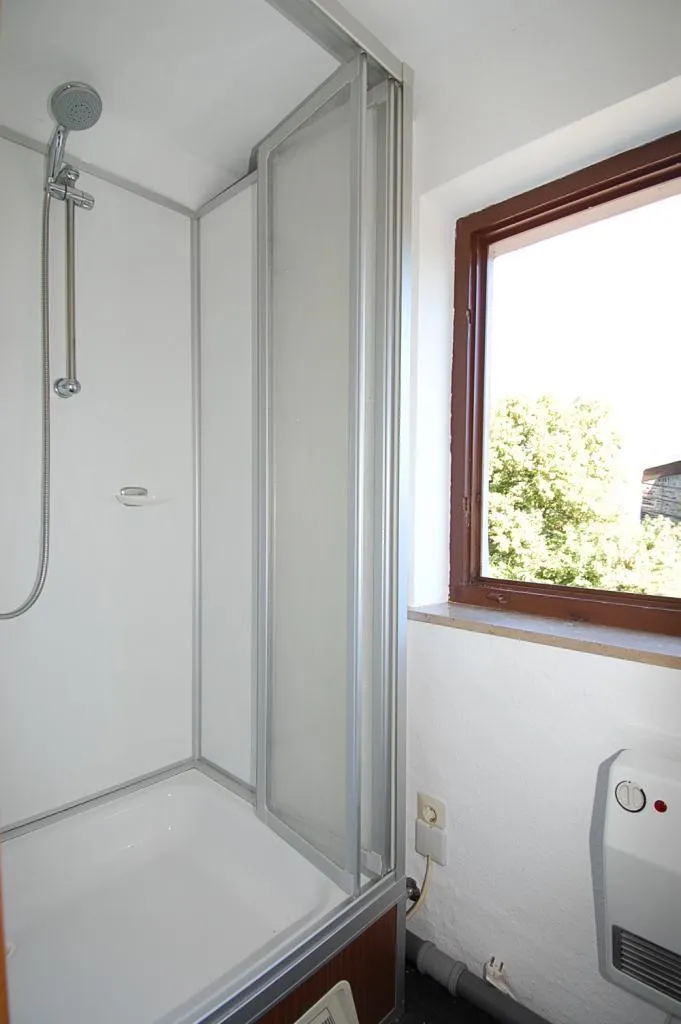 Die Holzfenster mit Rollläden sind von 1988. Fernsehempfang ist über SAT möglich. Beheizt wird die Wohnung über Elektro-Einzelöfen. Im Schlafzimmer befindet sich kein Ofen. Die Strom-Heizkosten und die Kosten fürs Warmwasser wurden auf ca. 40 EUR monatlich geschätzt und sind bereits in den Nebenkosten enthalten.