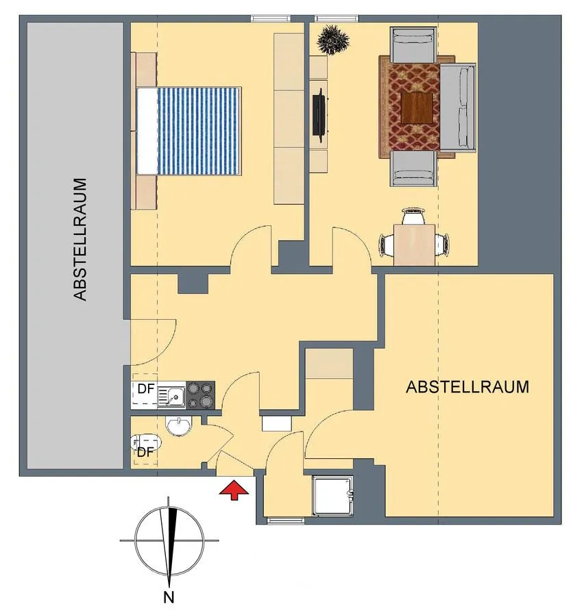 Zur Wohnung gehören ein Abstellraum in der Wohnung und ein Abstellraum im Untergeschoss.
