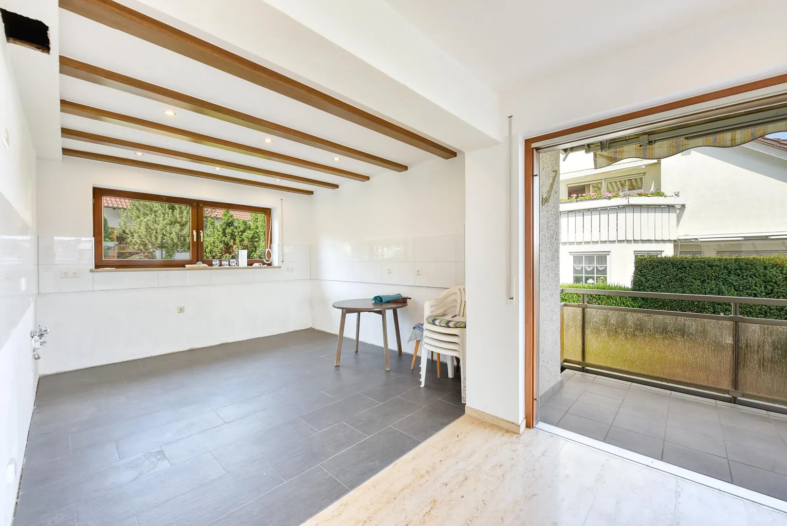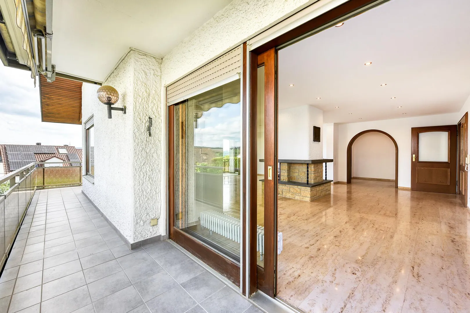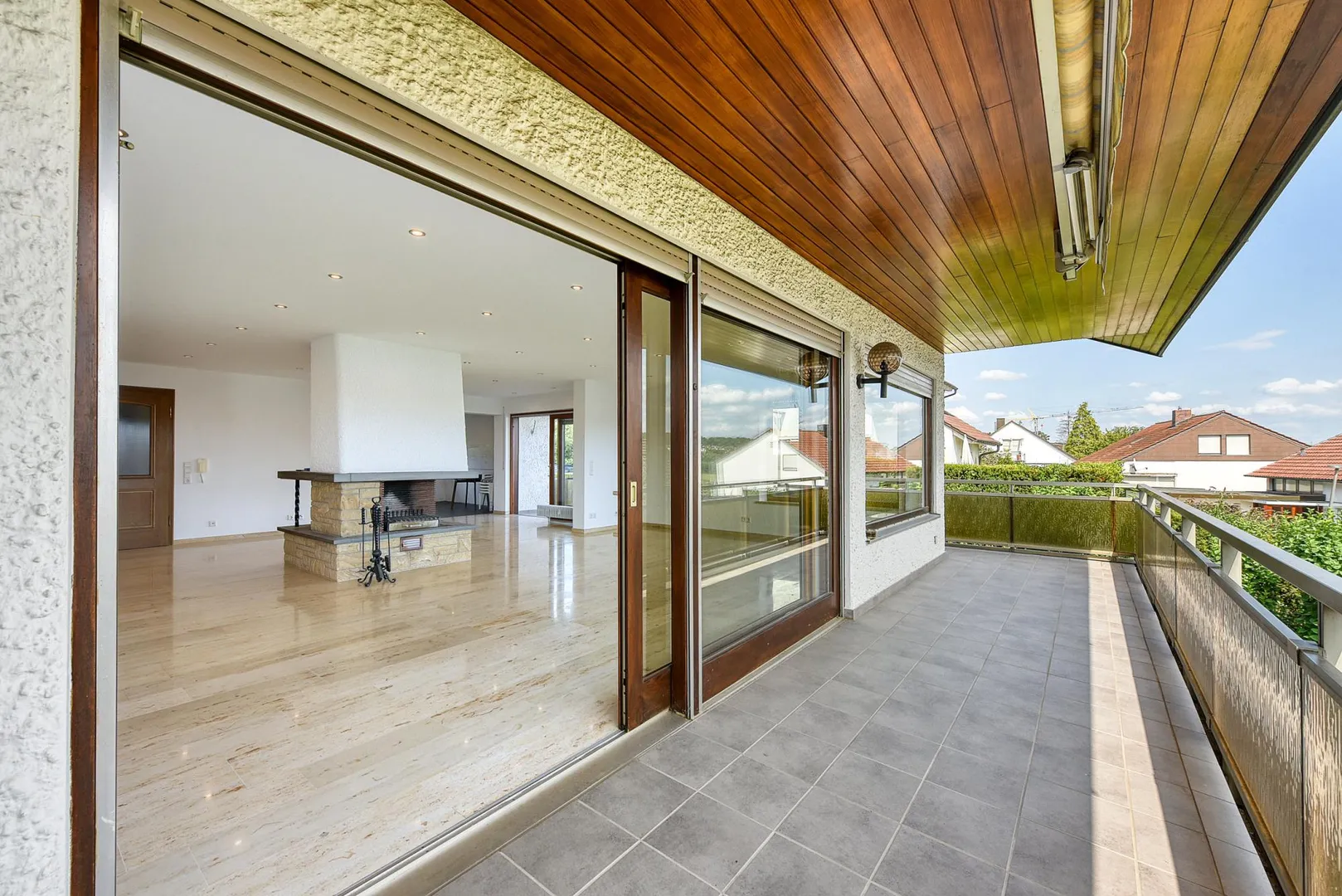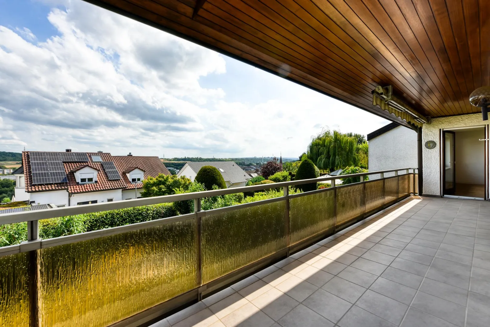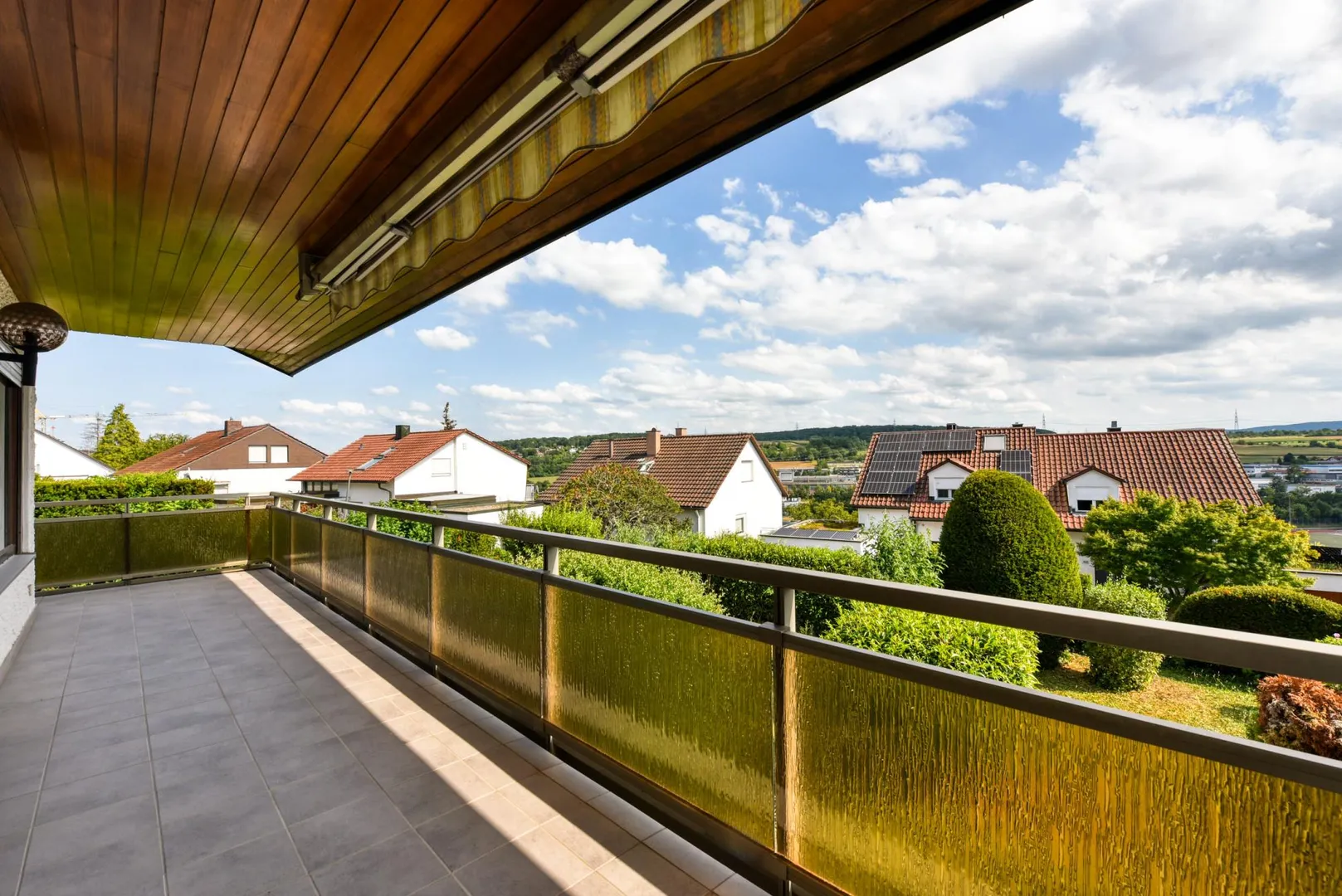 Der Balkon ist ausgestattet mit zwei Markisen.