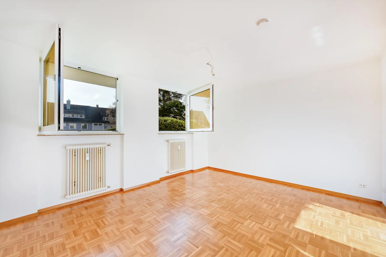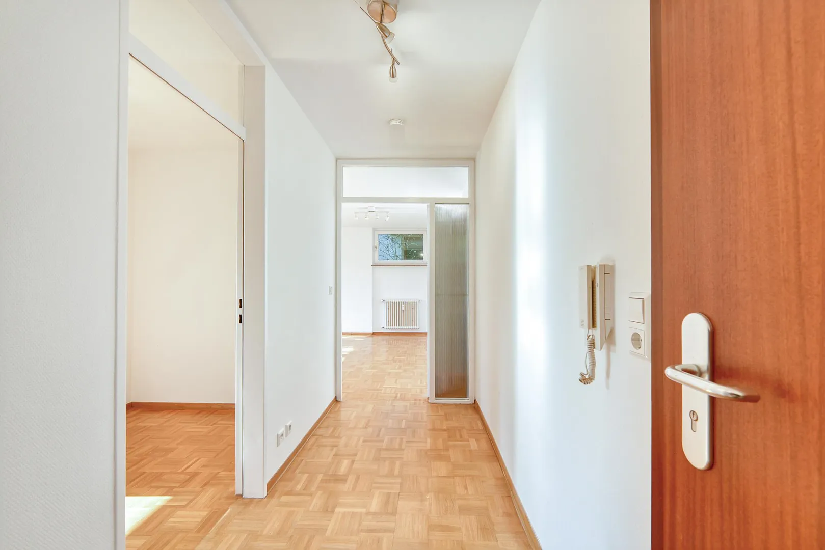 Im Flur sowie in den Zimmern sind Parkett-Böden verlegt.