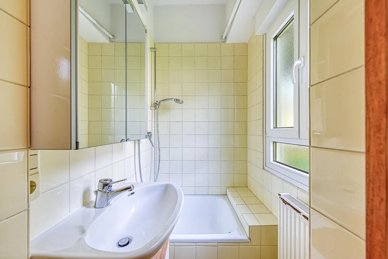 Diese gemütliche, ruhige und renovierte 2-Zimmer-Wohnung befindet sich im 1. Obergeschoss einer 7-Familien-Doppelhaushälfte.