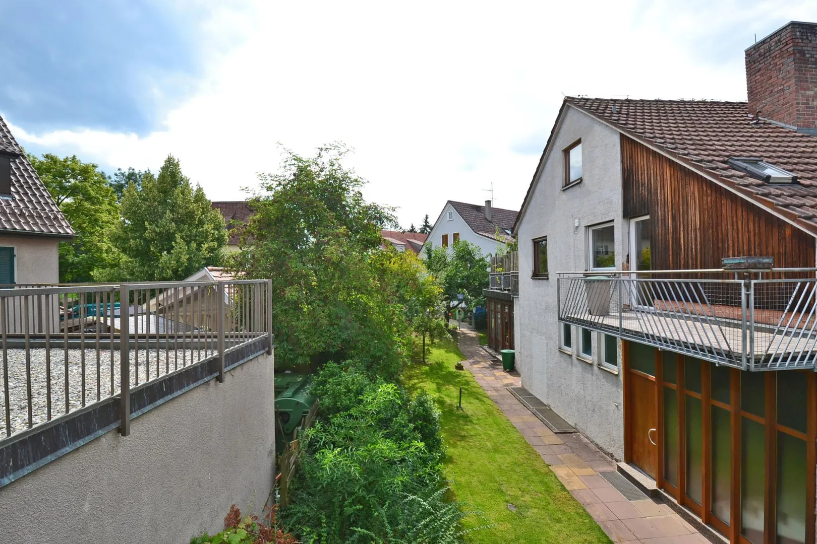 Das Wohnhaus befindet sich in zweiter Baureihe von der Straße im alten Ortskern von Stuttgart-Weilimdorf.