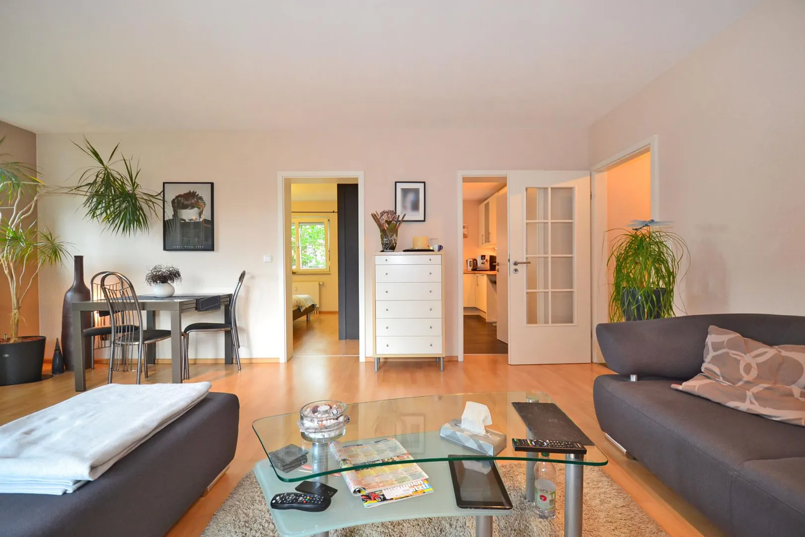 Das Schlafzimmer und die Küche erreichen Sie vom Wohnzimmer aus.