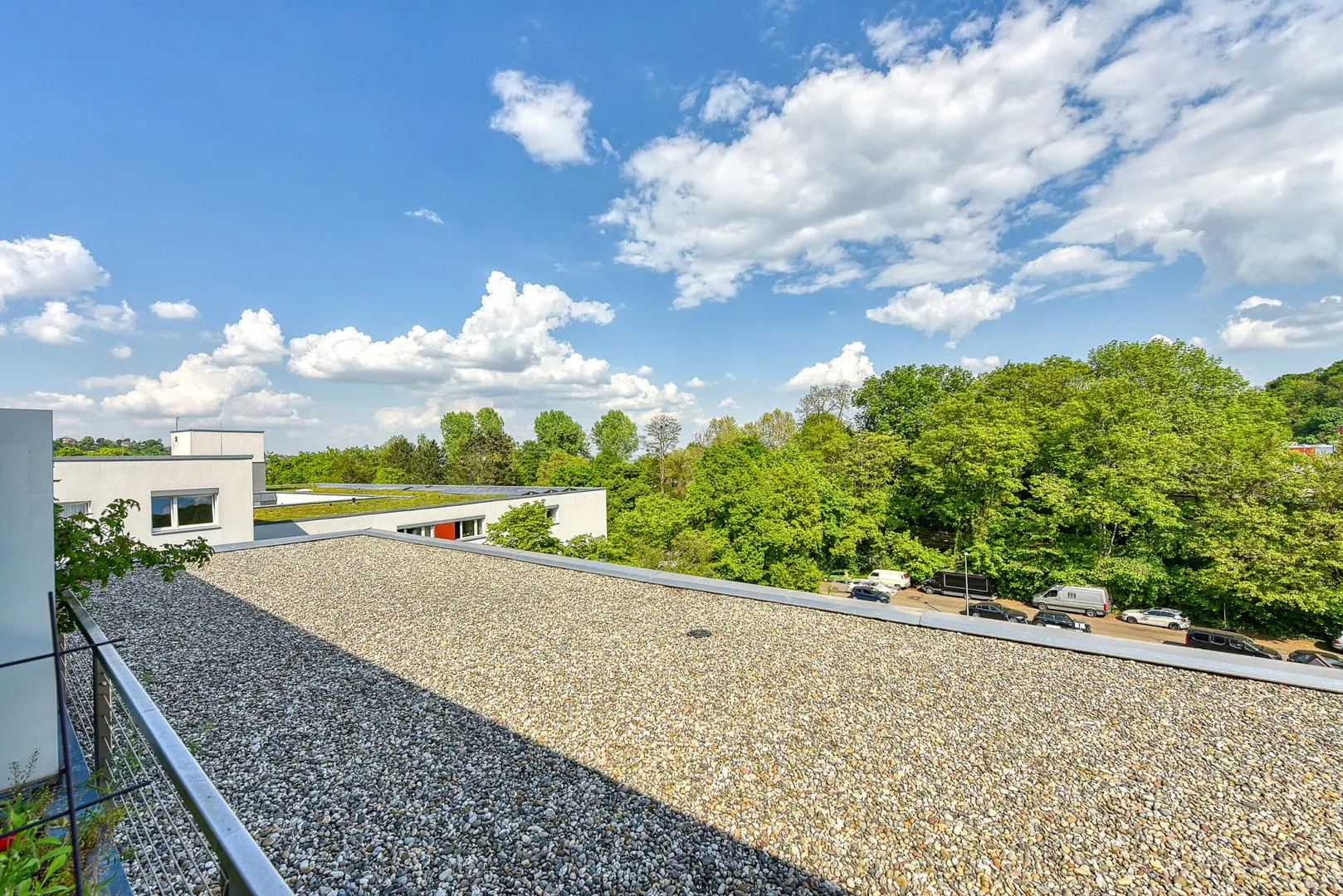 Der ca. 6 m² große und überdachte Balkon ist nach Osten ausgerichtet und ist ausgestattet mit einem Pflanzbeet.