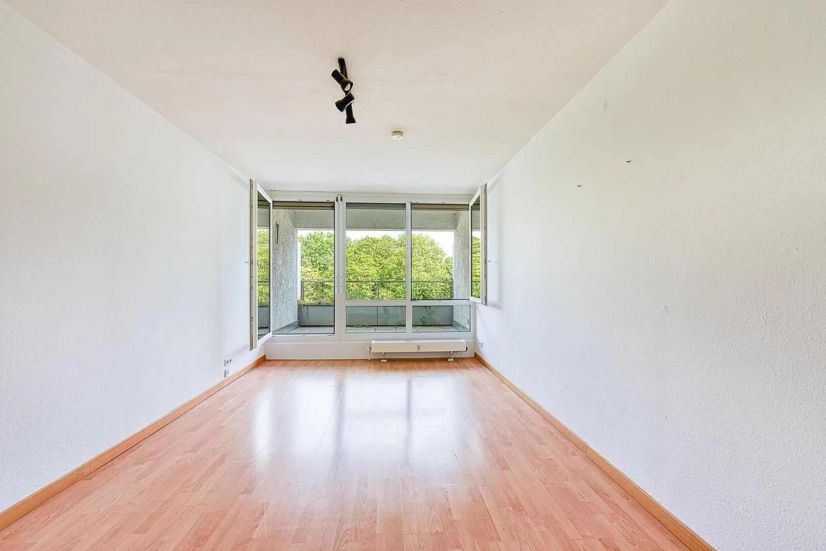 Im Zimmer ist Laminat verlegt. Die Wände sind mit Raufasertapete tapeziert und befinden sich im gepflegten Zustand. Die Raumhöhe beträgt ca. 2,55 Meter.