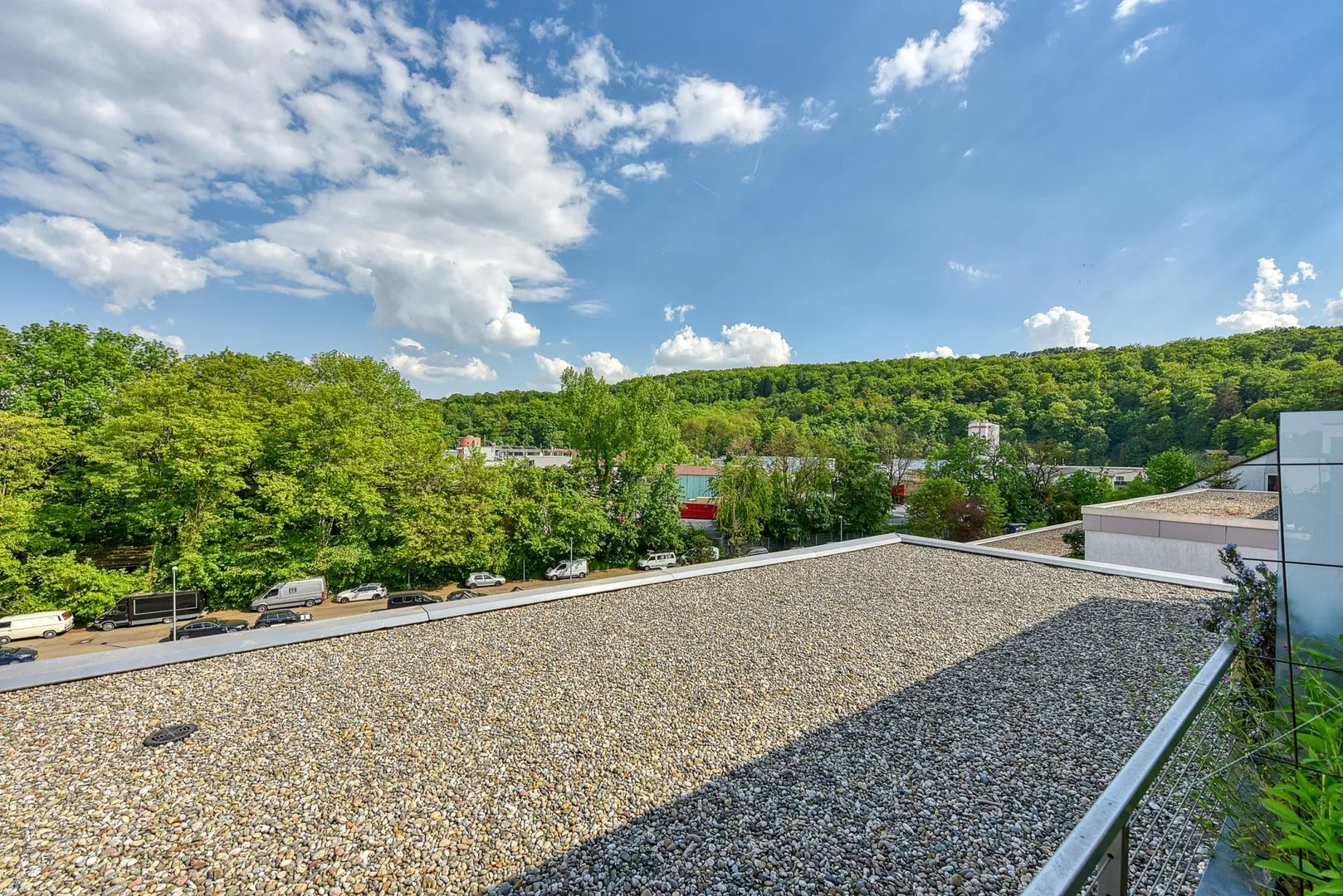 Vom Balkon gibt es entweder einen Blick ins Grüne und/oder einen Fernblick.