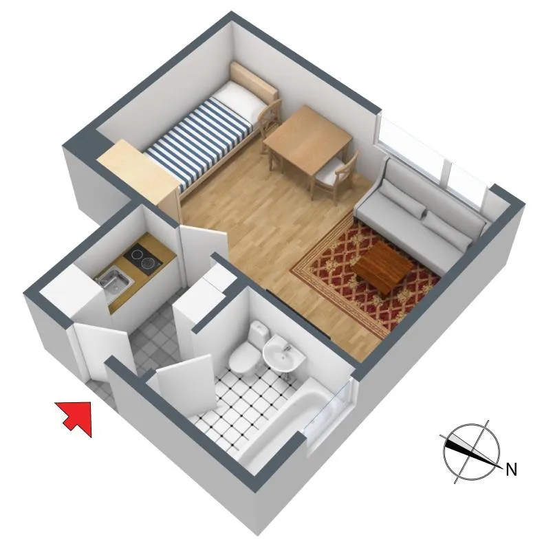 Diese ruhig gelegene und gemütliche 1-Zimmer-Wohnung befindet sich im Hochparterre (Erdgeschoss).