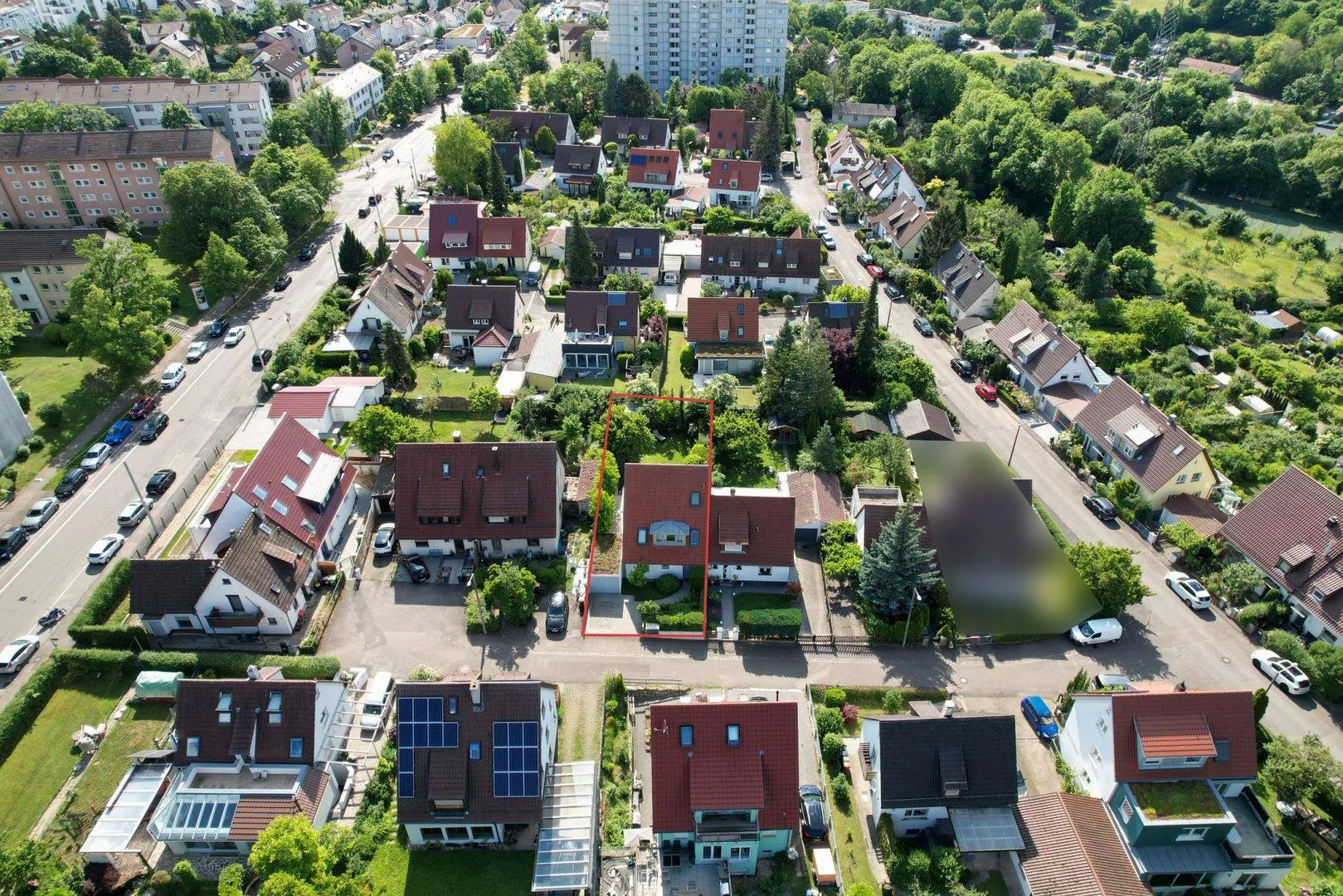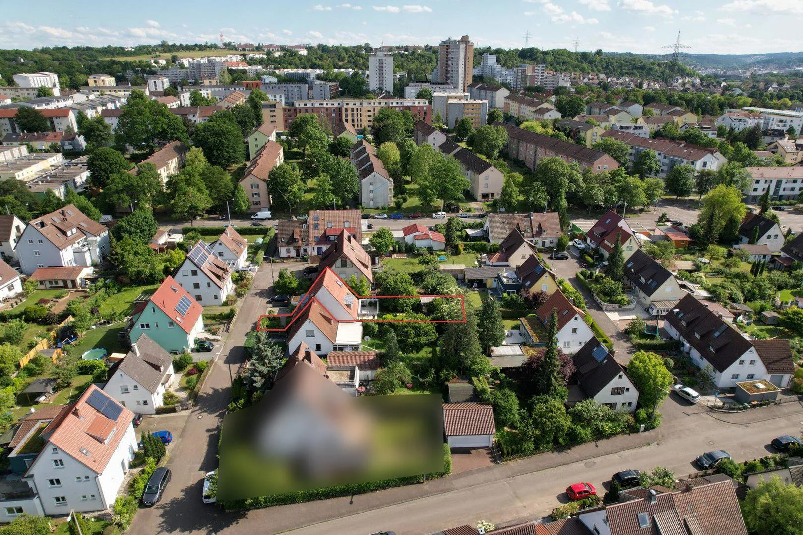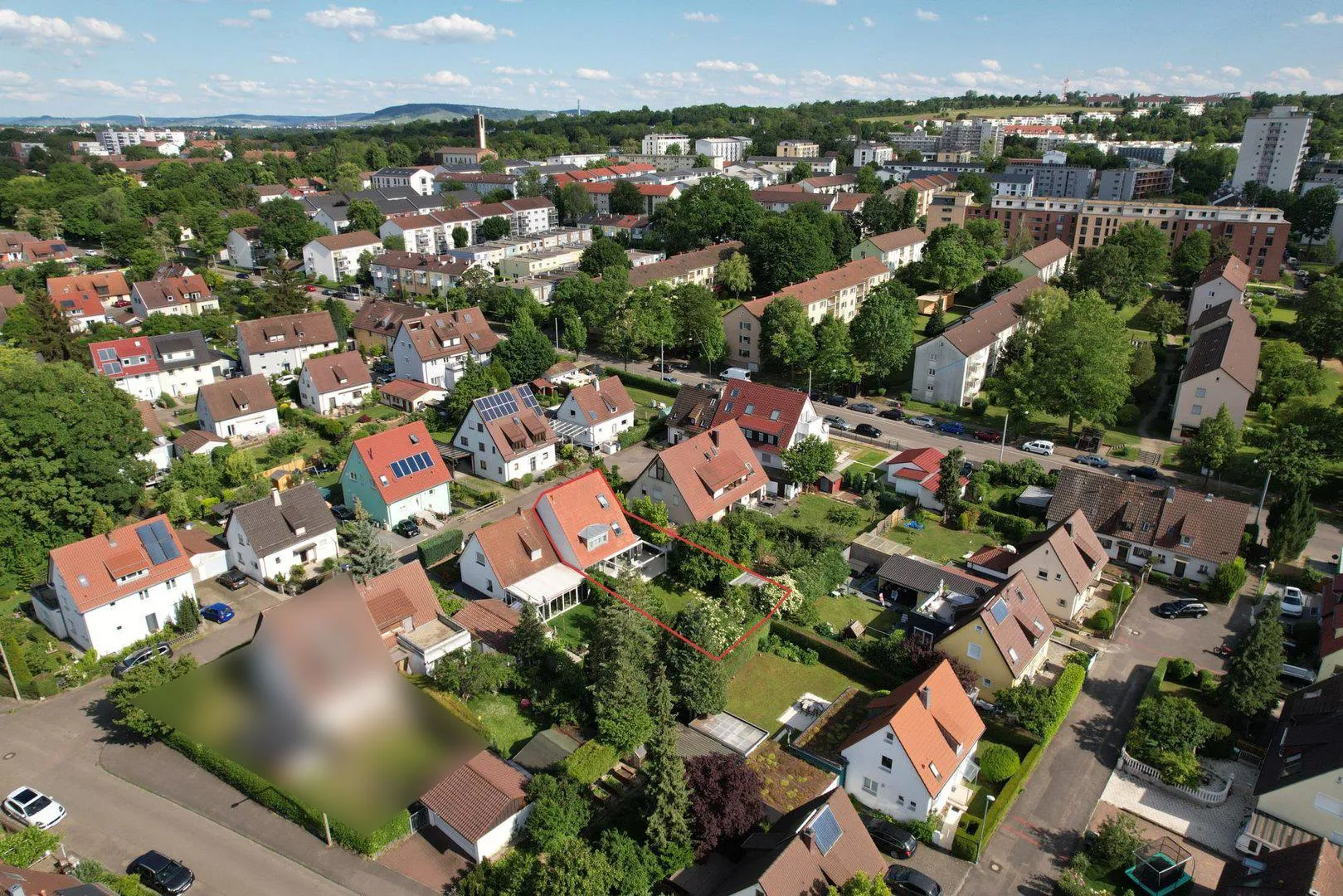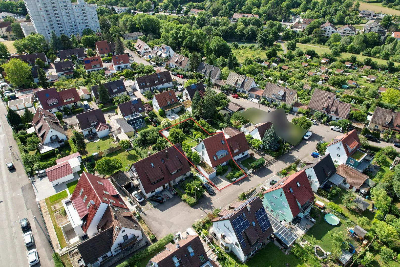 Das Haus befindet sich in ruhiger, grüner und zentrumsnaher Wohnlage in Stuttgart-Zuffhausen/Rot im Wohngebiet "Alte Rotwegsiedlung" und dort in einer Sackgasse.