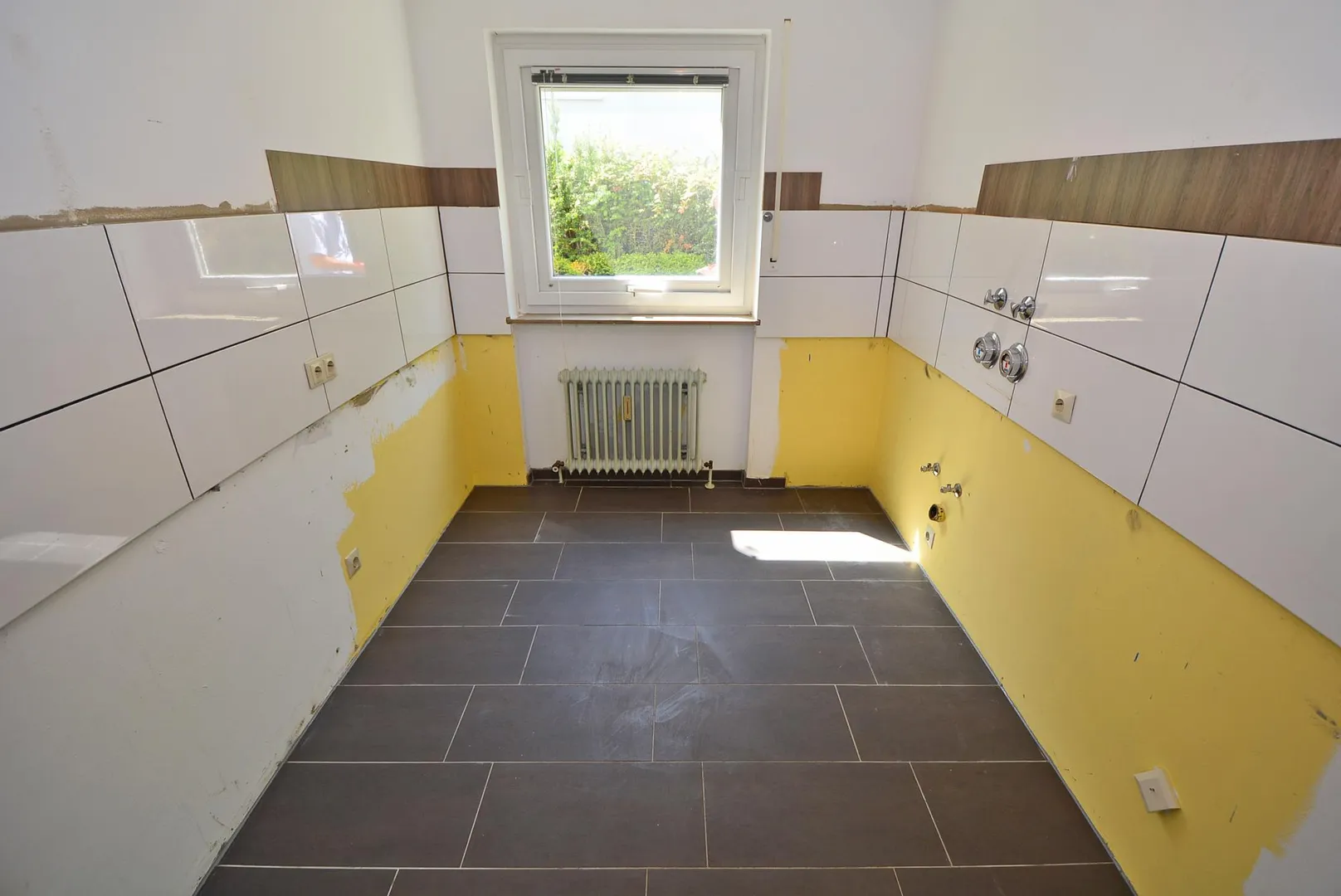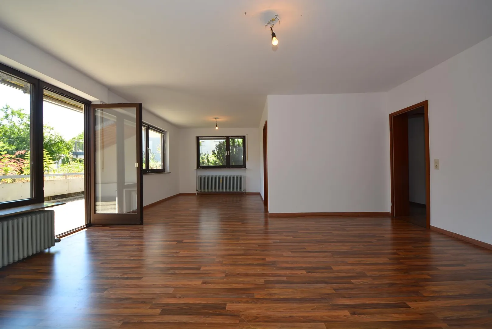 In den Zimmern sowie im Flur ist Laminatboden verlegt. Die Böden im Windfang, im Bad sowie im separaten WC sind gefliest. Der Küchenboden wurde ca. 2013 gefliest.