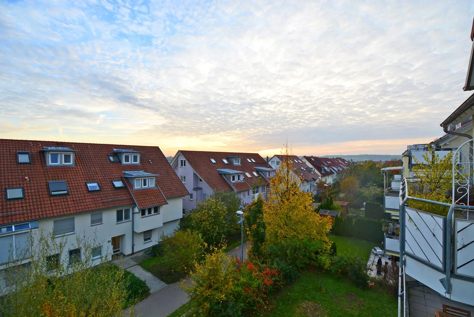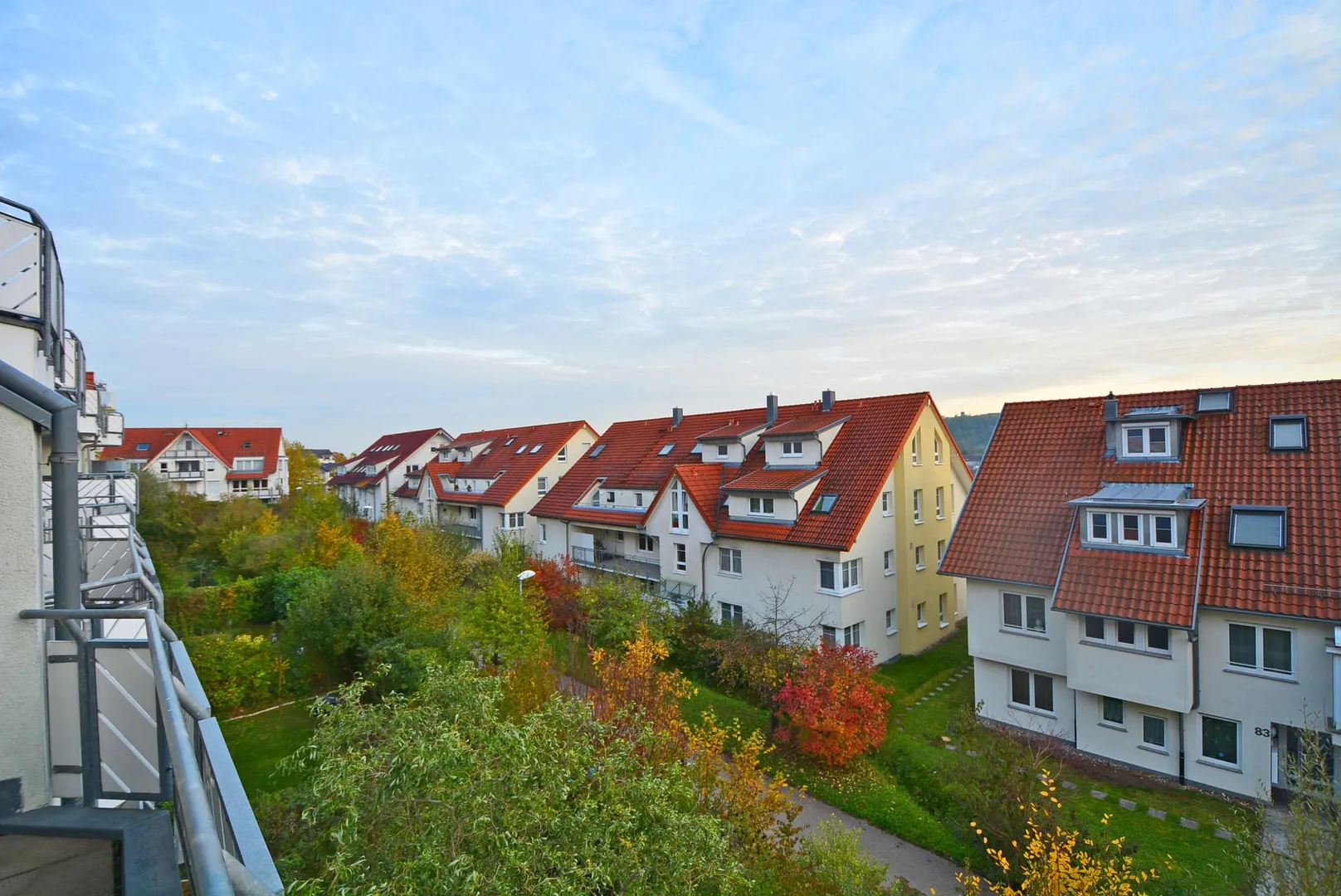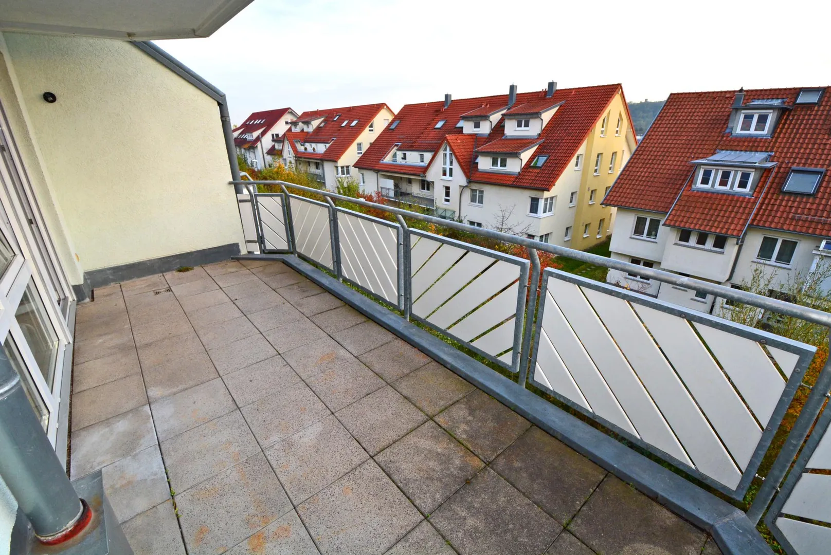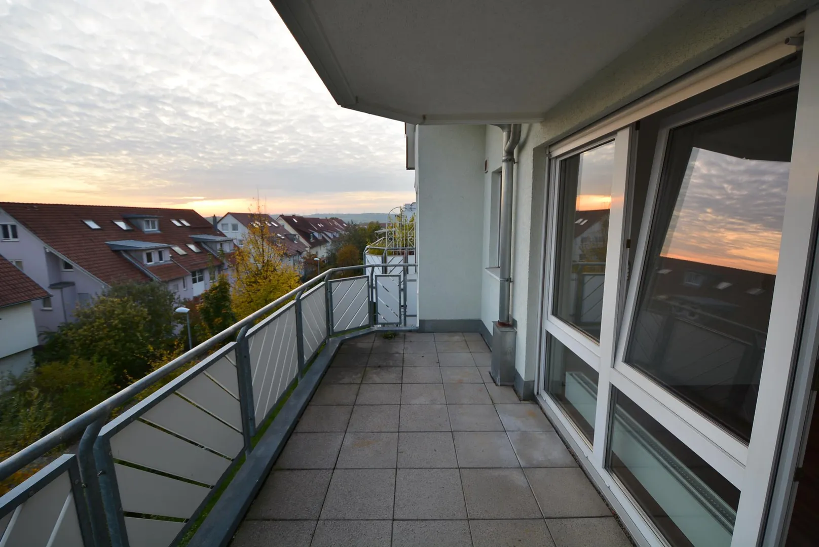 Der ca. 11,5 m² große und teilüberdachte Süd-Balkon mit Fernblick ist vom Wohn-/Essbereich begehbar.