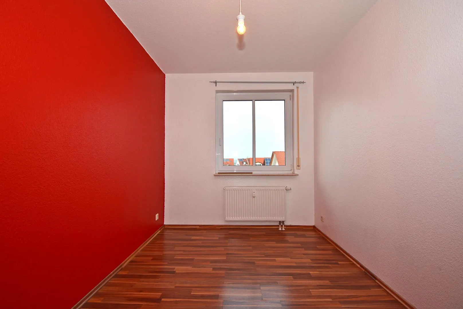 In den Zimmern und im Flur ist ein Laminatboden verlegt. Die Böden im Badezimmer, im separaten WC und in der Küche sind gefliest.