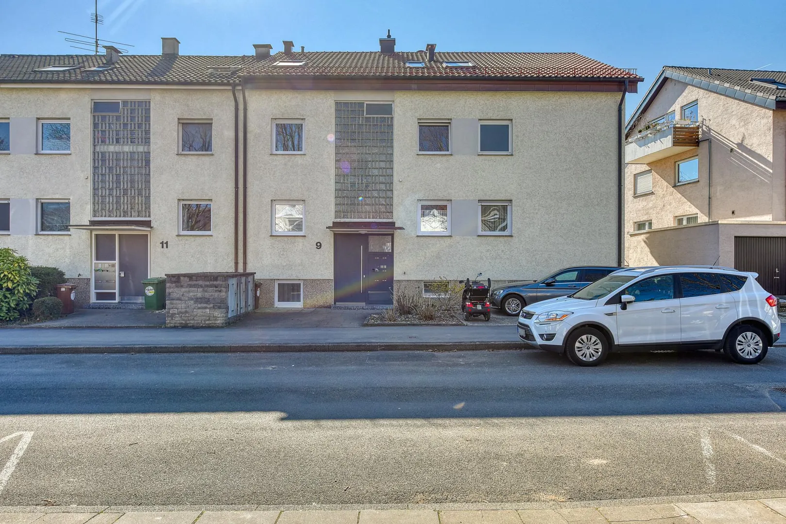 Diese modernisierte und geflegte 1-Zimmer-Wohnung befindet sich im 1. Obergeschoss einer 6-Familien-Doppelhaushälfte.