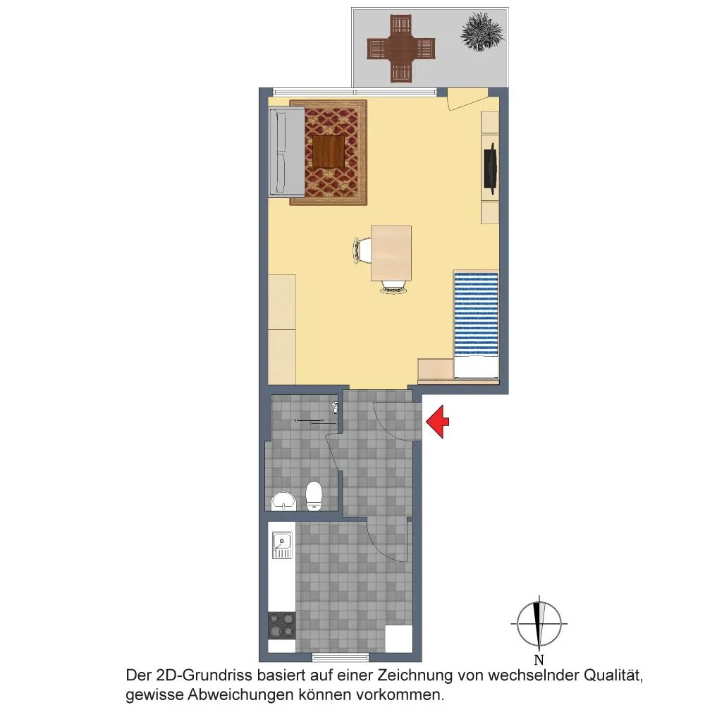 Über das Zimmer ist der ca. 4 m² große Süd-Balkon begehbar. Der Balkonboden wird aktuell erneuert.