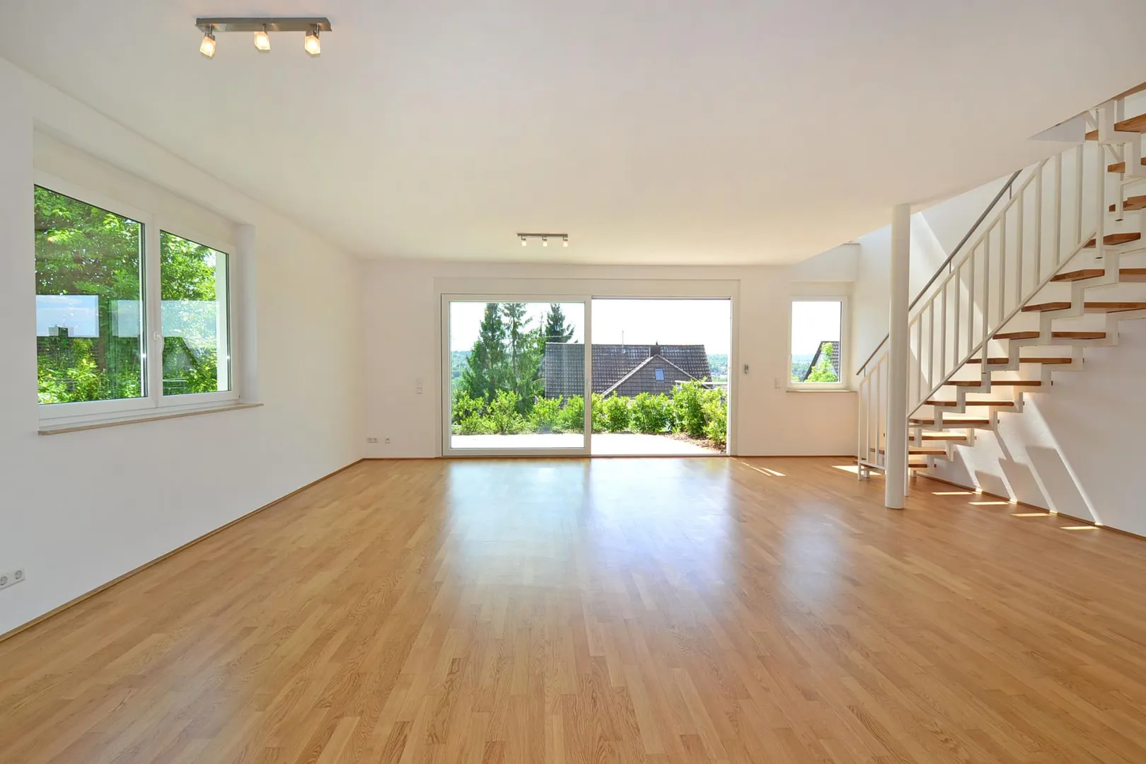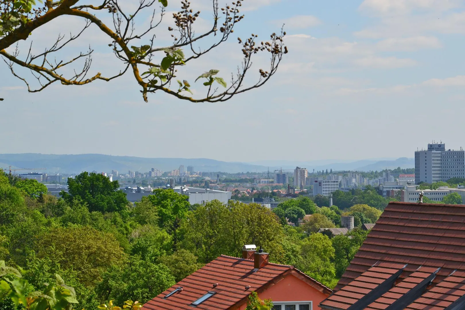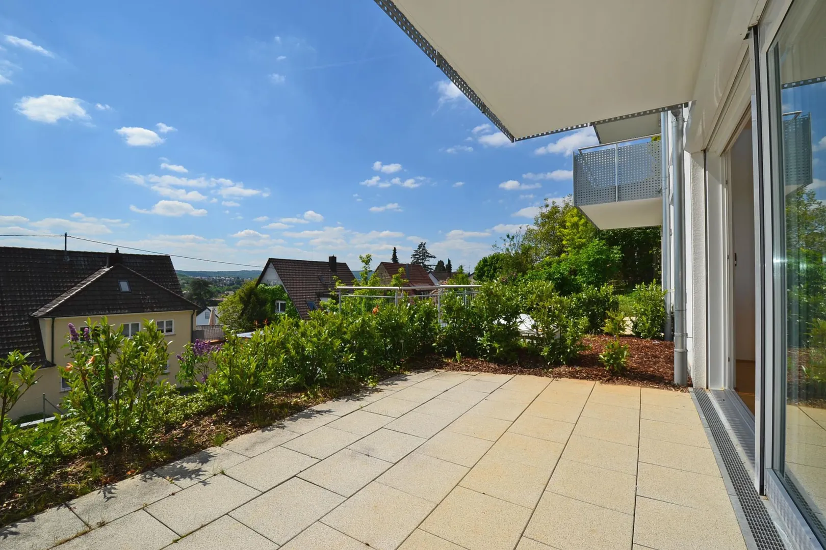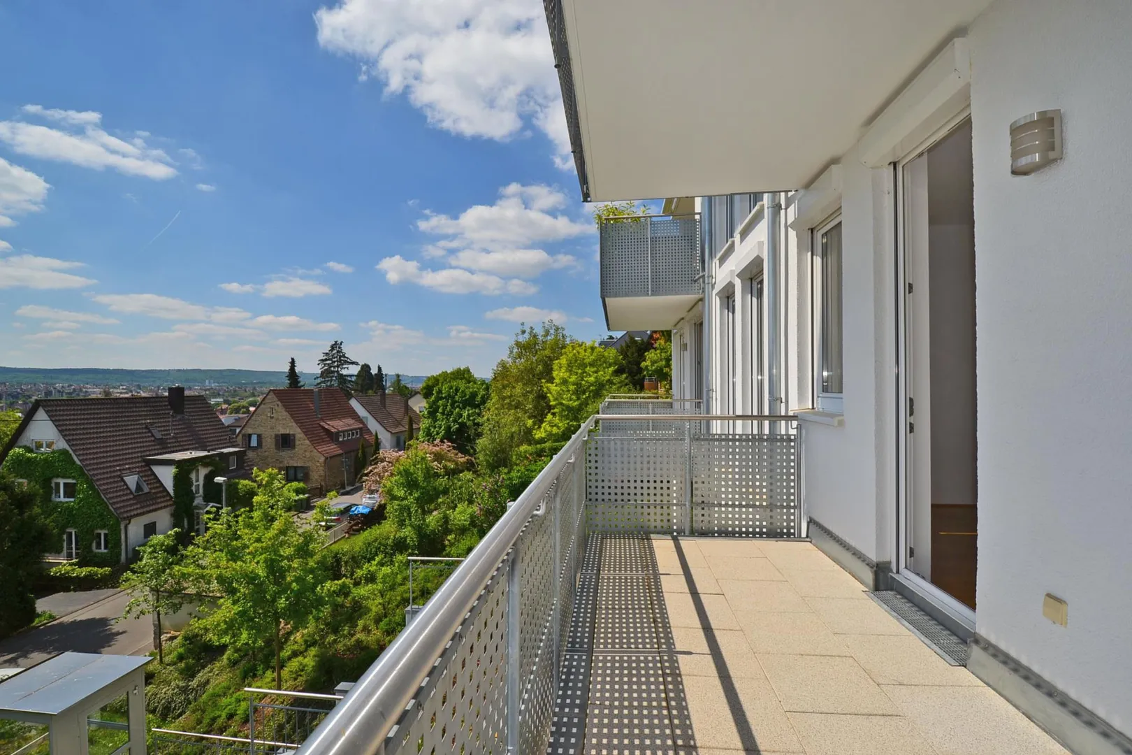 Der anschließende Süd-Balkon ist überdacht. Von hier aus haben Sie einen weitläufigen Fernblick über Korntal hinweg.