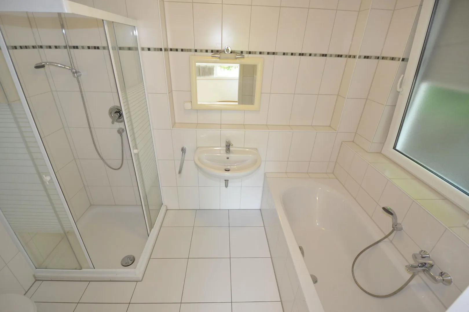 Vom ruhig gelegenen Schlafzimmer gelangen Sie in das Hauptbad.