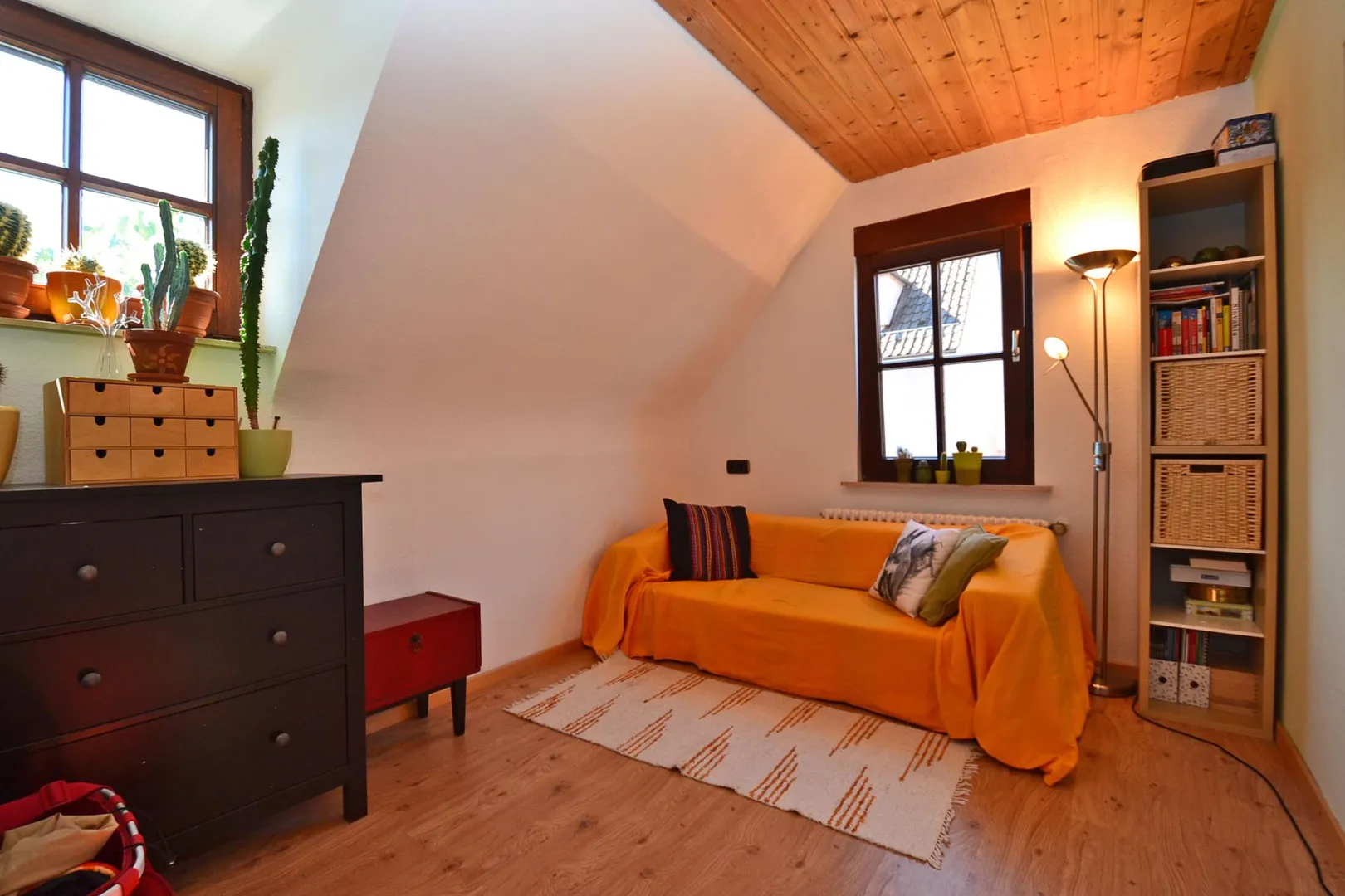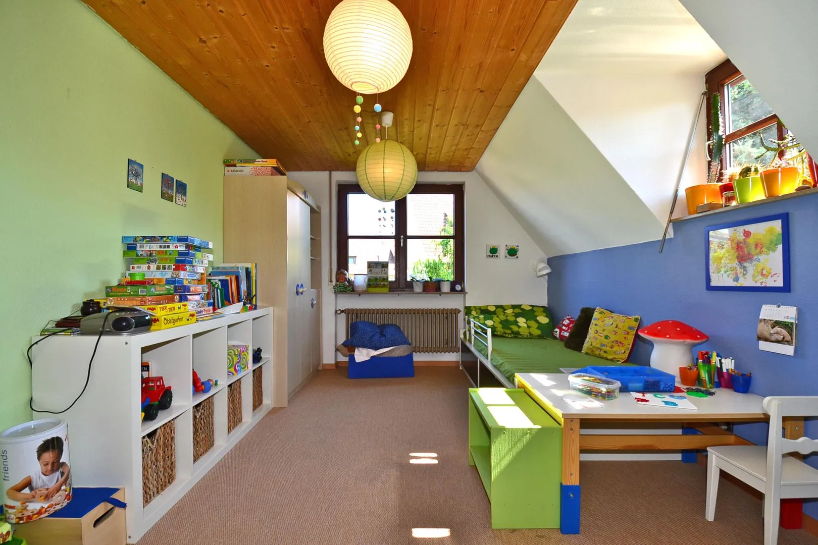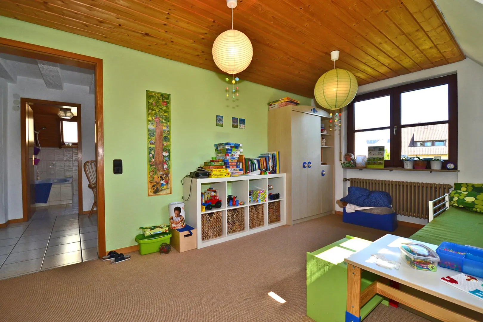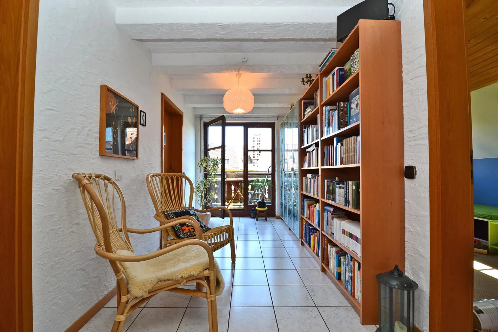 Diese individuell und offen gestaltete 4½-Zi.-Maisonette-Wohnung befindet sich im 1. und im 2. Obergeschoss (Dachgeschoss mit Schrägen) eines 2-Familienhauses.