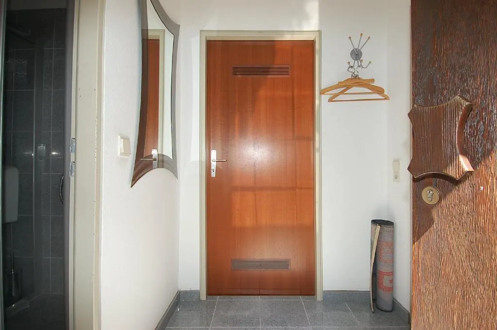 In der Wohnung befindet sich ein ca. 4,5 m² großer Ankleide- und Abstellbereich. Dort befinden sich der Kleiderschrank und der Kühlschrank sowie der Waschmaschineanschluss.