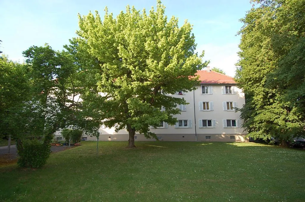 Die Wohnung befindet sich in einer ruhigen und grünen Lage einer "Tempo 30 Zone" im Stadtteil Hallschlag in 70376 Stuttgart-Bad Cannstatt.