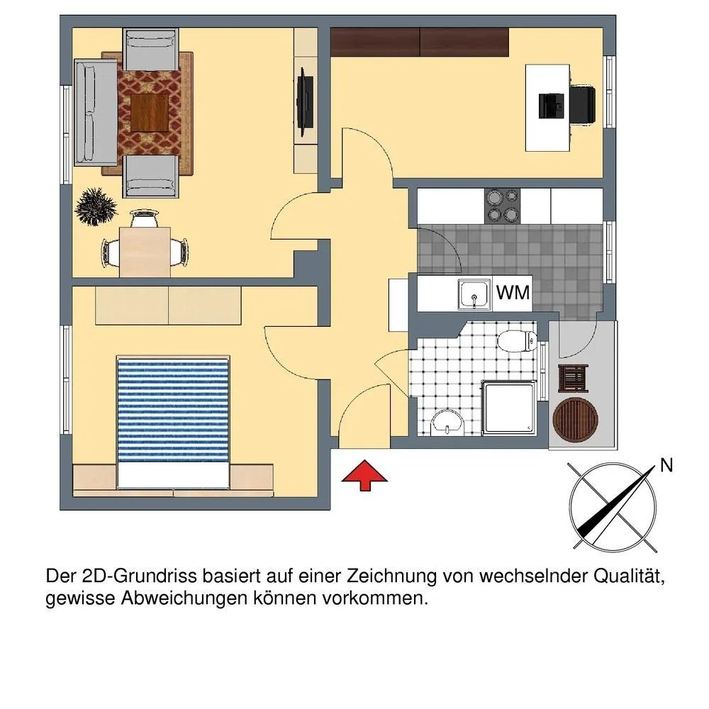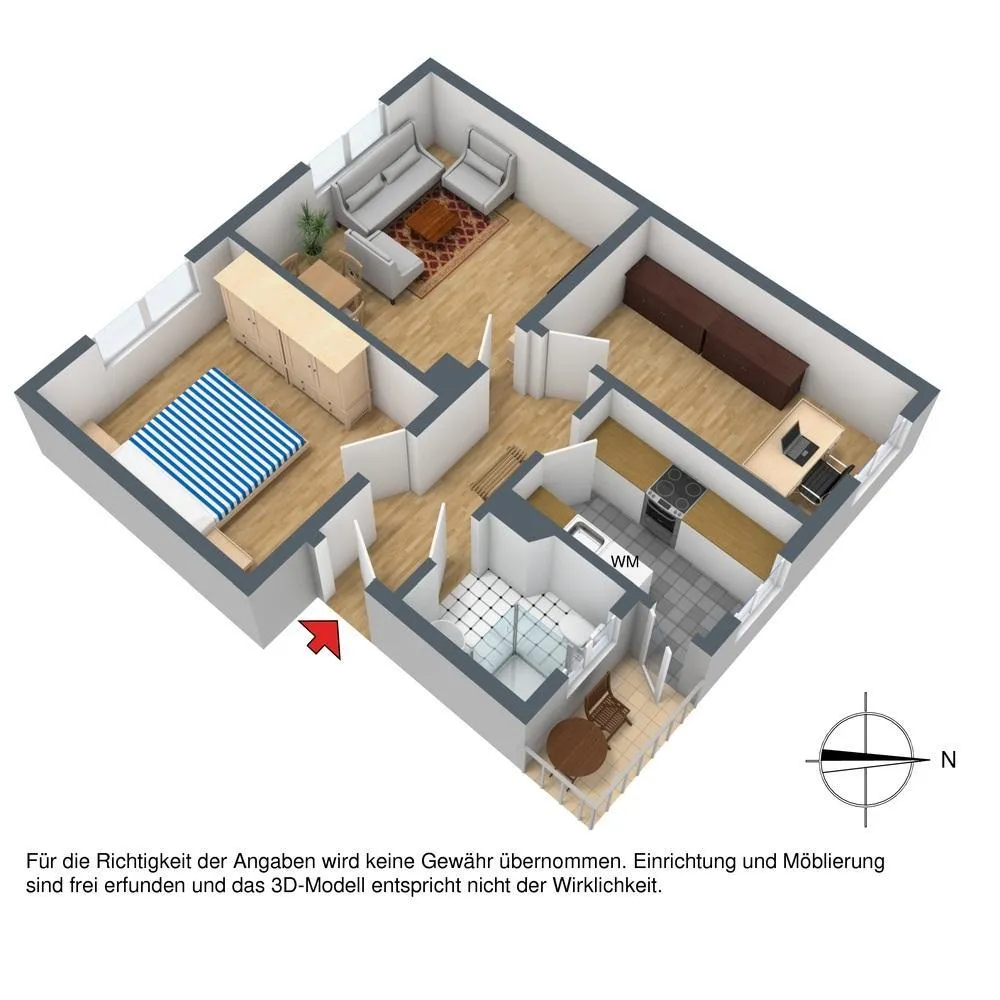 Bitte beachten Sie, dass die Wohnung auf den Bildern größer wirkt als sie eigentlich ist. Die Bilder sollen Ihnen zur Orientierung dienen. Grundrisse und Flächenberechnung liegen dem Exposé anbei.