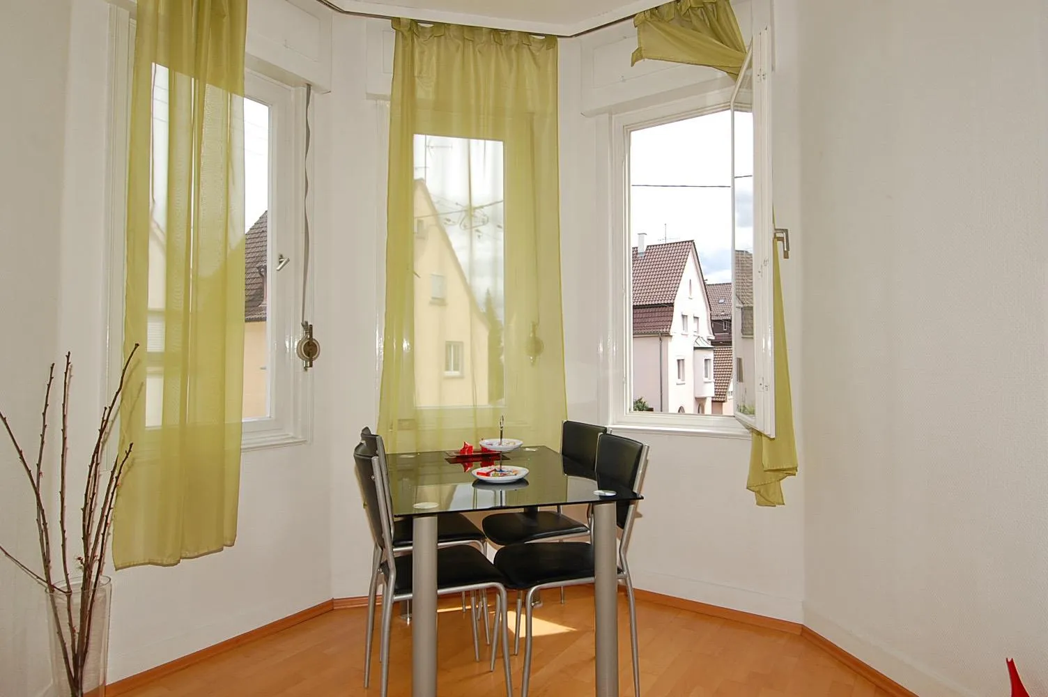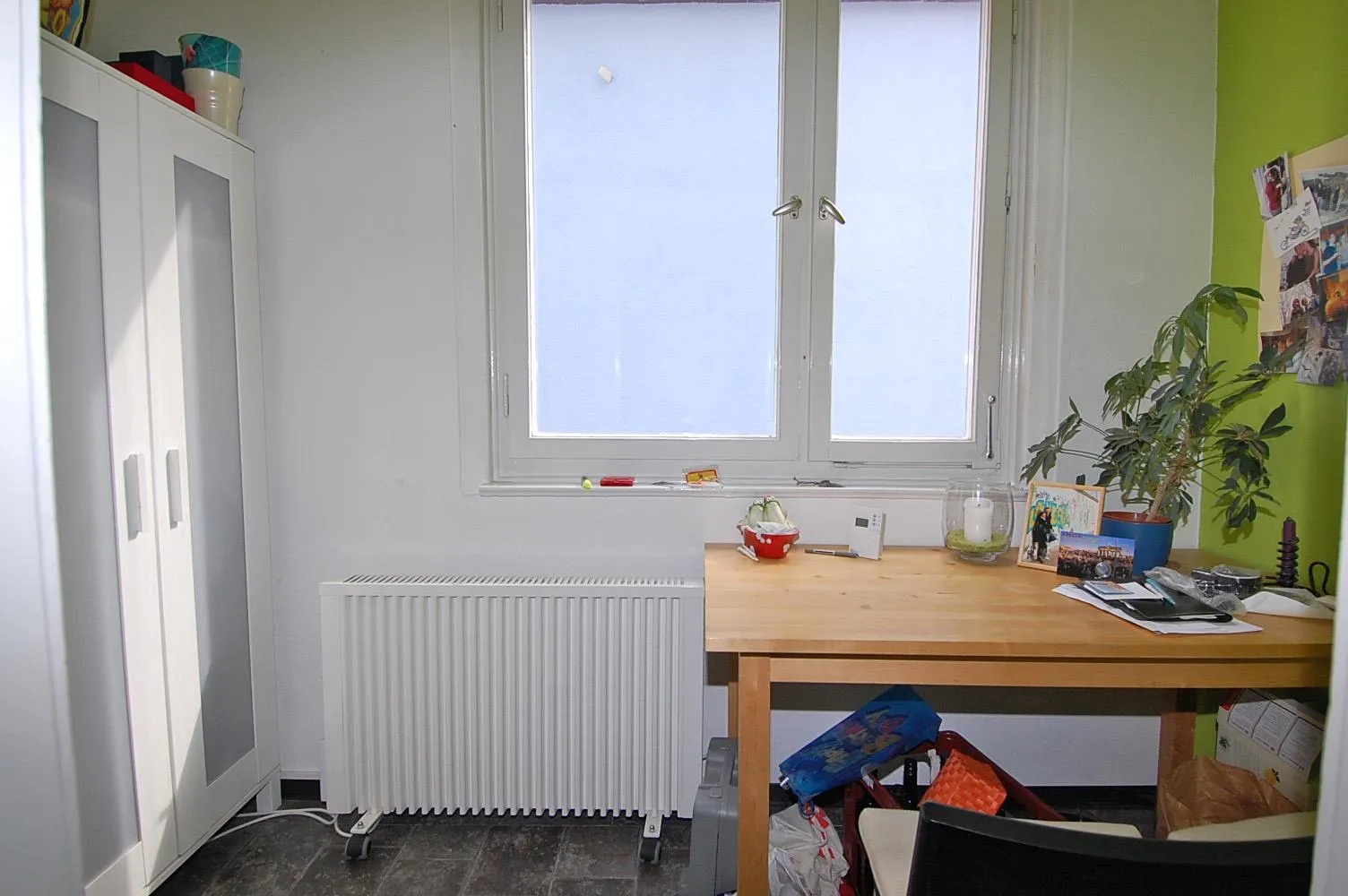Die Wohnung ist ausgestattet mit älteren Holz-Doppelglas-Fenstern mit Rollläden.