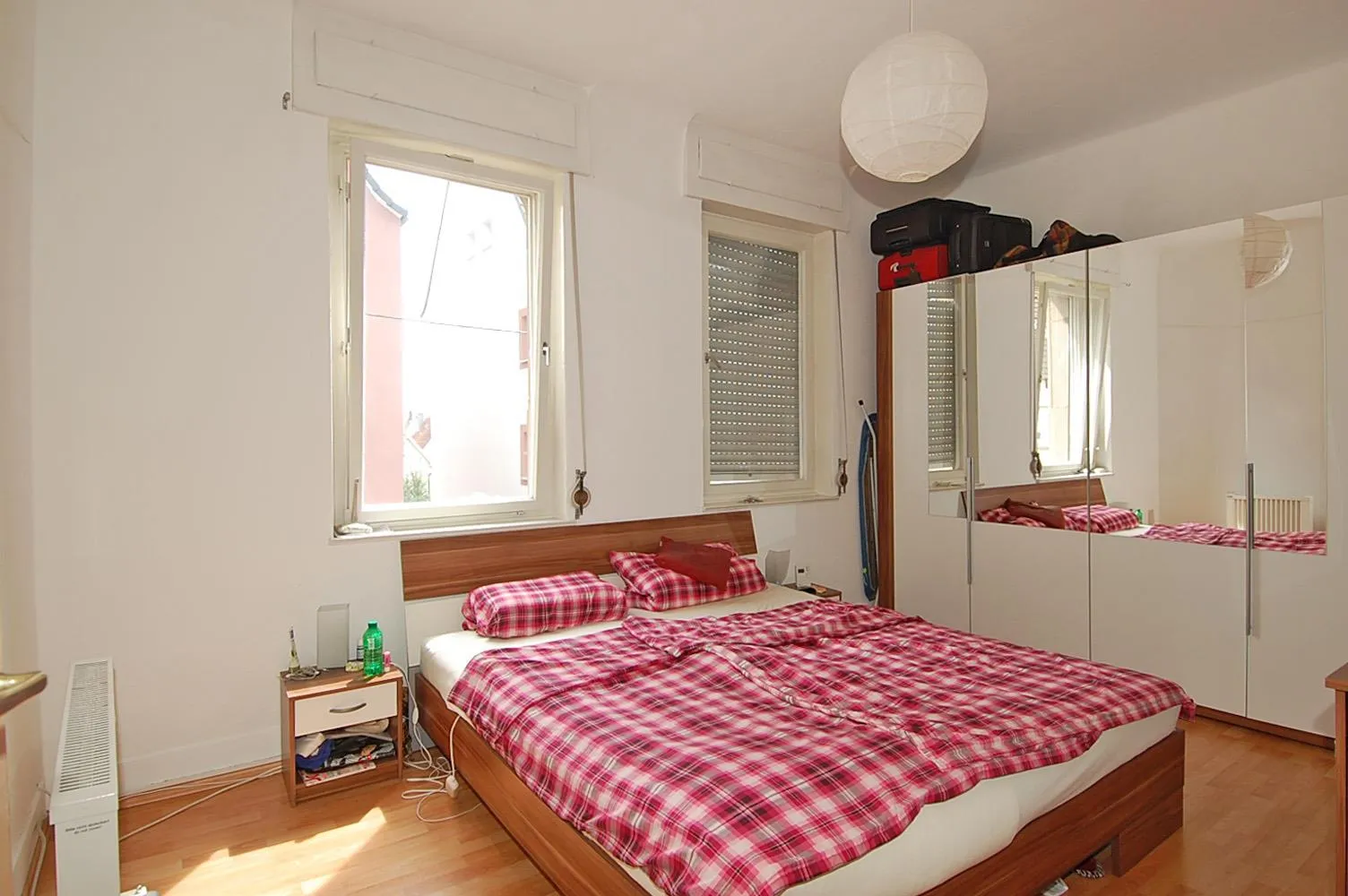 Das Schlafzimmer ist mit Raufaser tapeziert und mit Laminatboden ausgestattet.