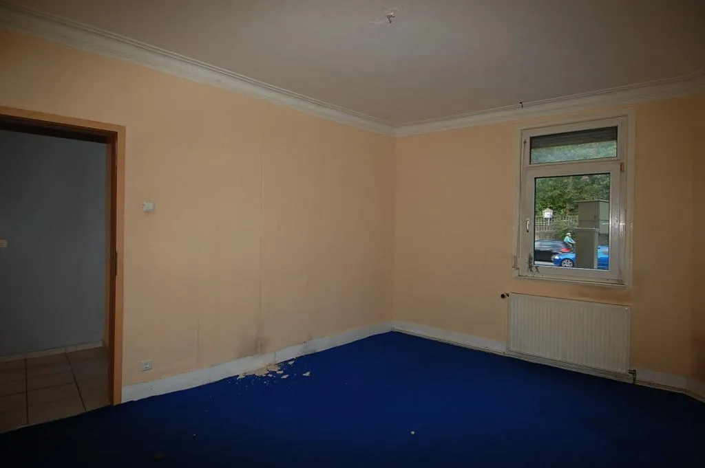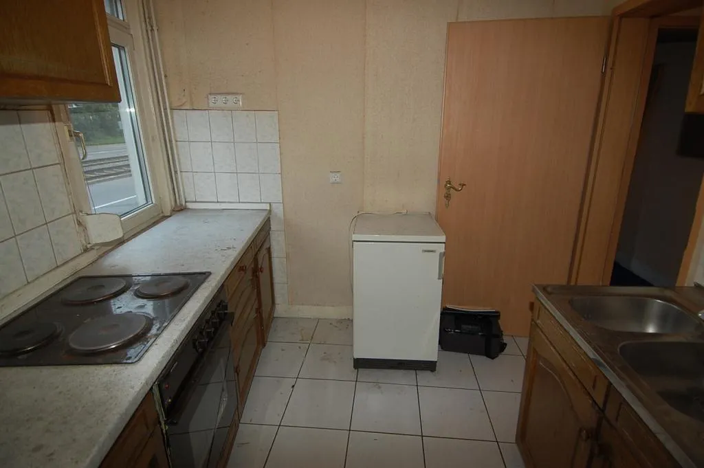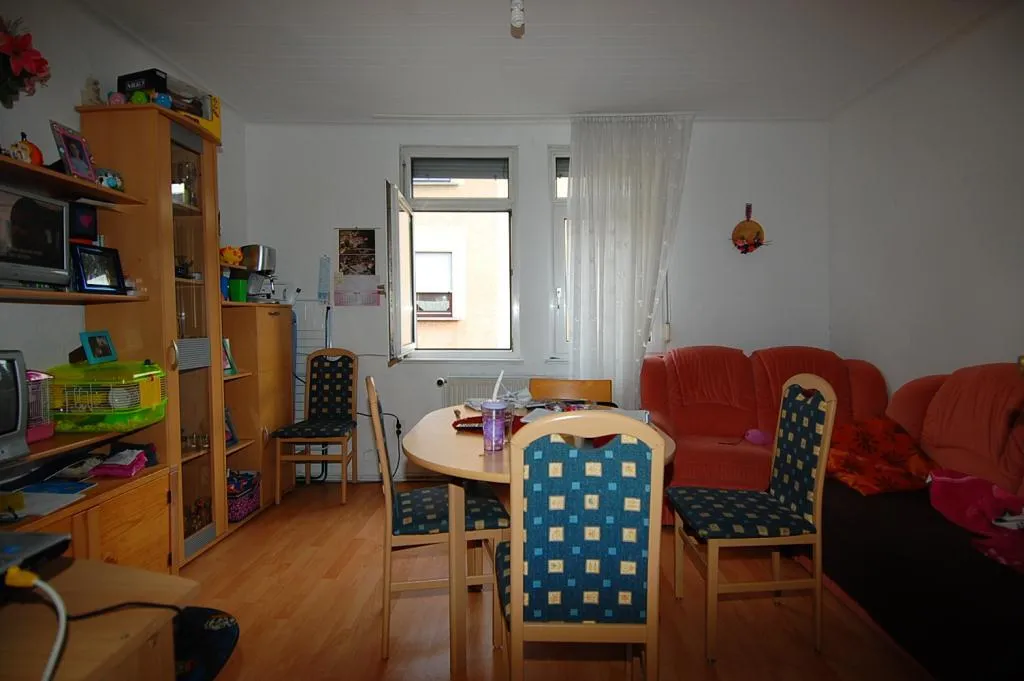 Im Obergeschoss befindet sich eine leere 2 Zimmer-Etagen-Wohnung mit ca. 54 m² Wohnfläche. Die Türen und Türrahmen wurden ca. 2000 erneuert. Die Raumhöhe beträgt ca. 2,62 Meter. Die Einheit ist sanierungsbedürftig.