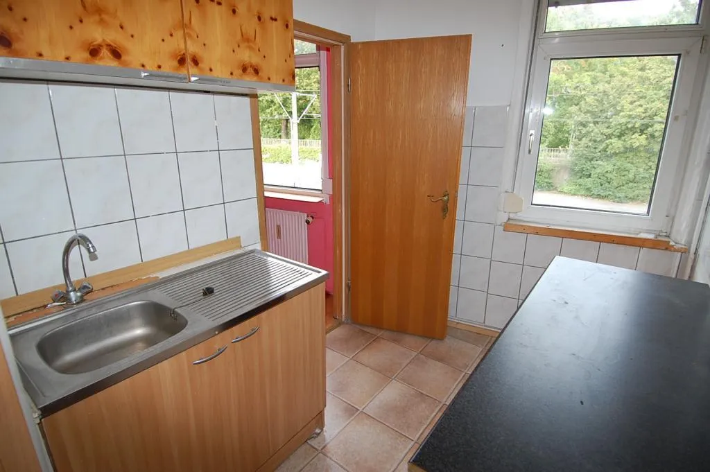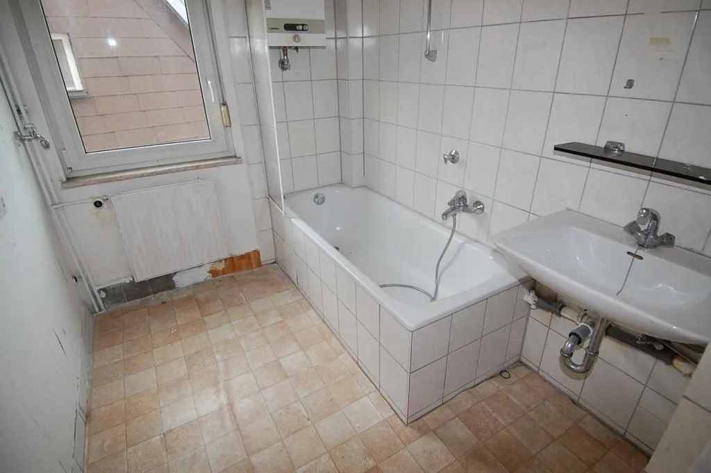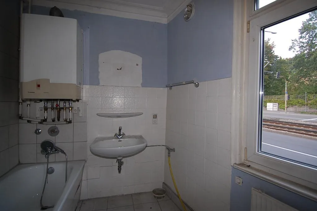 Die 3 Zimmer-Etagen-Wohnung im DG 1 mit ca. 50 m² Wohnfläche nach DIN ist für 440 EUR Kalt-Miete monatlich vermietet. Die Raumhöhe beträgt ca. 2,50 Meter. Die Einheit befindet sich im sanierungsbedürftigen Zustand.