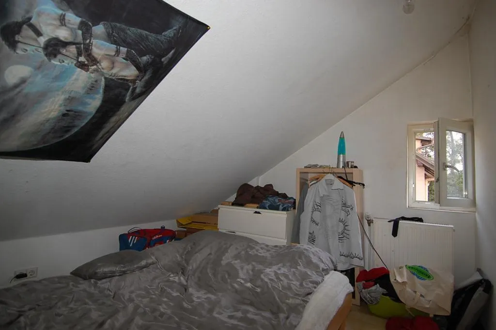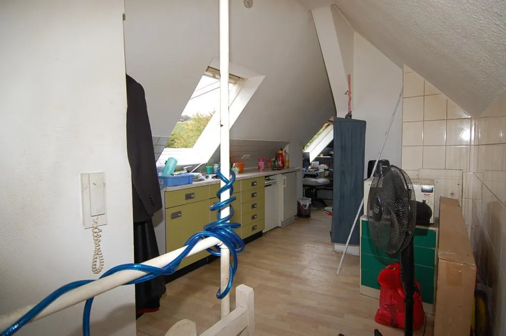 Die 1- bis 2-Zimmer-Etaagen-Wohnung im DG 2 mit ca. 18 m² Wohnfläche nach DIN ist für 315 EUR Kalt-Miete monatlich vermietet. Die Raumhöhe beträgt ca. 2,36 Meter. Die Einheit befindet sich im sanierungsbedürftigen Zustand.