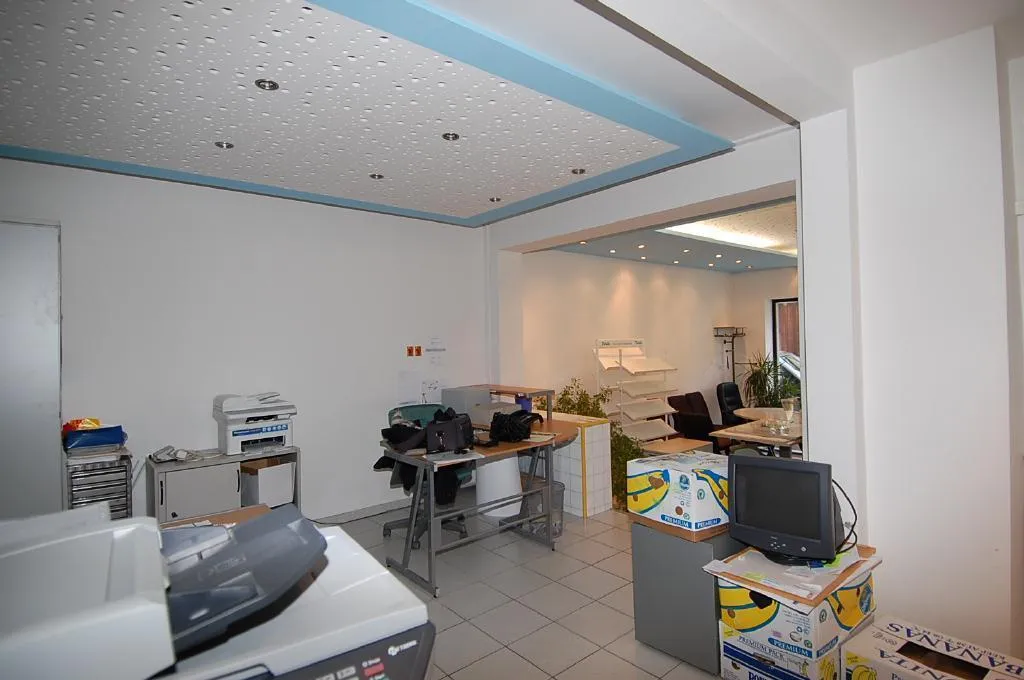 Die helle Ladenfläche ist ca. 40m² groß, mit einer 8 Meter langen Schaufensterfront und mit einer abgehängten Decke ausgestattet.