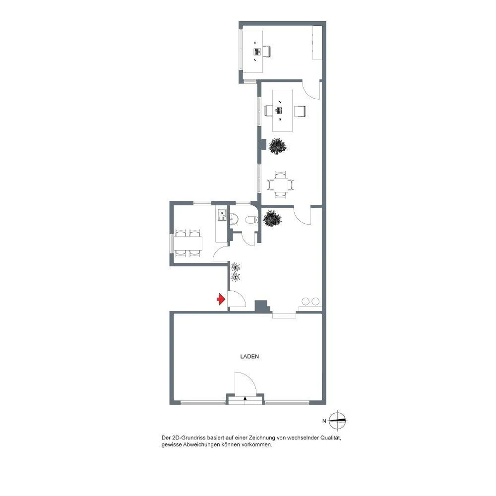 Diese schicke Ladeneinheit befindet sich im Erdgeschoss eines 2-Familien-Wohn-und Geschäftshauses.