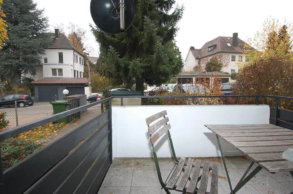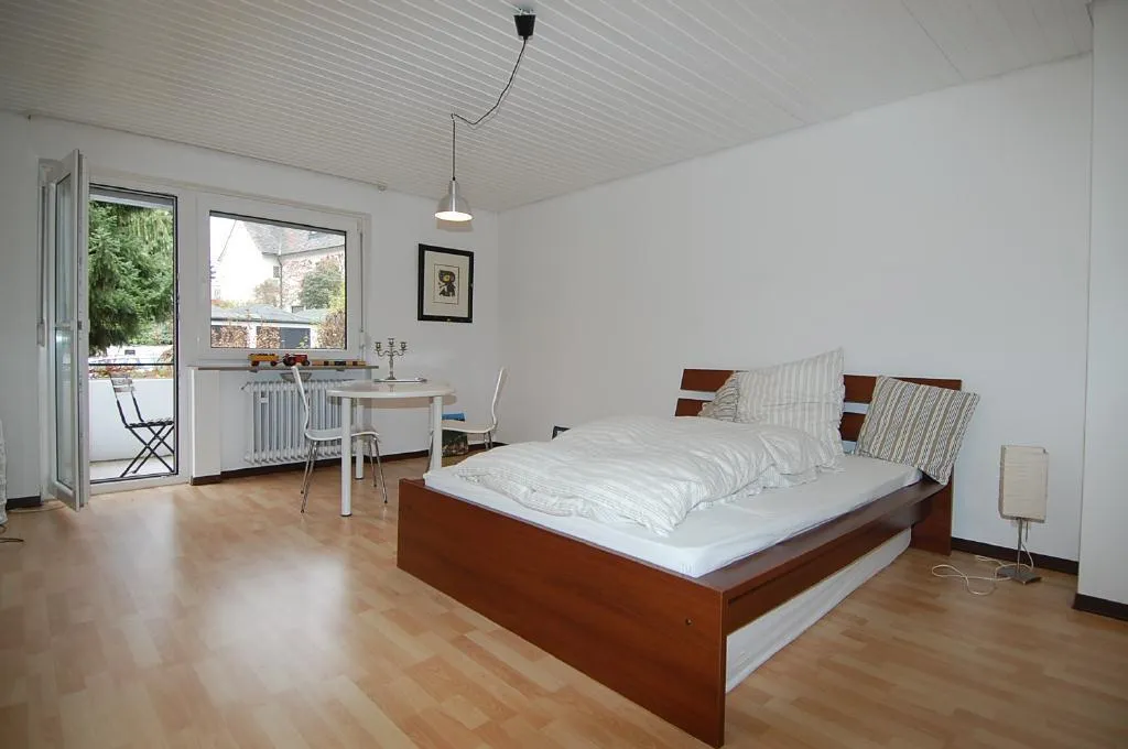 Diese schöne 1 Zimmer-Wohnung mit Balkon befindet sich im Hochparterre (Erdgeschoss) eines freistehenden 5-Familienhauses.