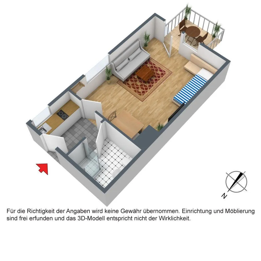 Trotz sorgfältiger Prüfung der im Exposé gemachten Angaben, können wir für die Richtigkeit und Vollständigkeit der Angaben keine Haftung übernehmen. Bitte beachten Sie, dass die Immobilie auf den Bildern größer wirkt als sie in der Realität ist.