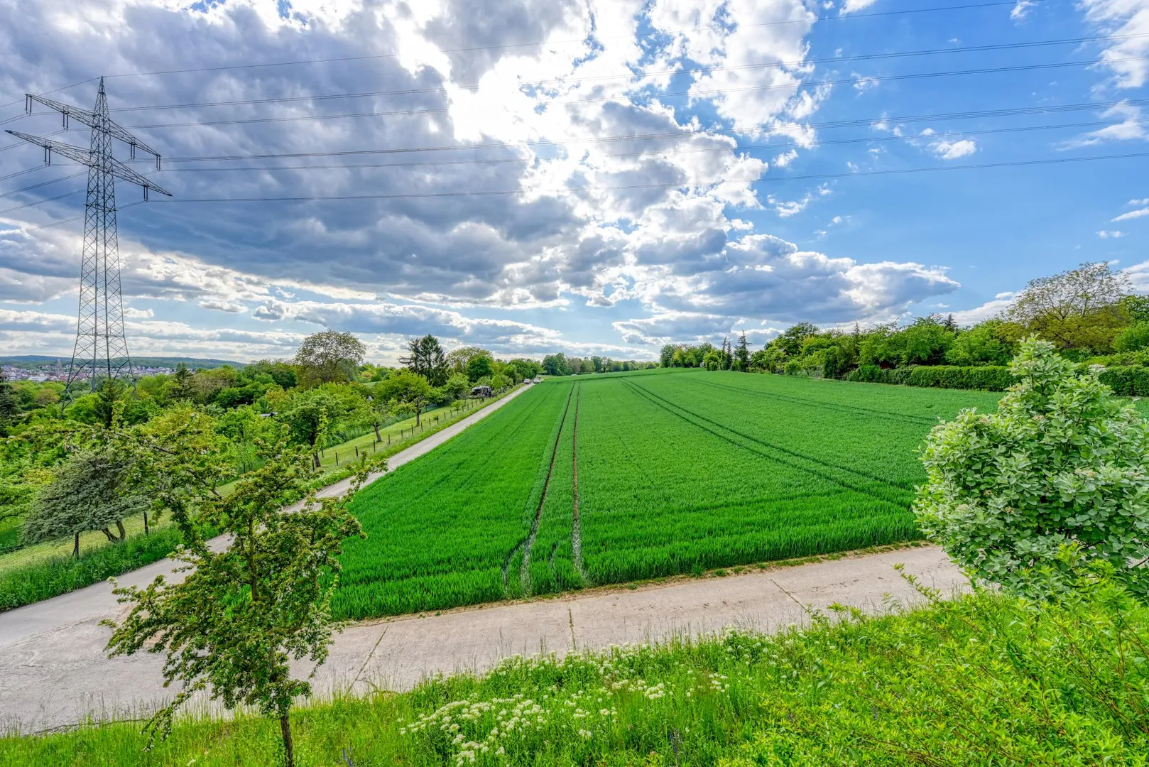 Das Haus befindet sich direkt am Feldrand, angrenzend an Grünflächen und Schrebergärten.
