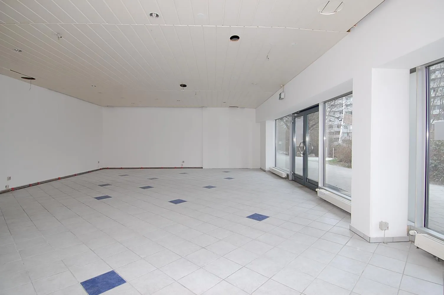 Die Decke ist auf eine Raumhöhe von ca. 2,90 abgehängt. Die Decke kann alternativ auch geöffnet werden.