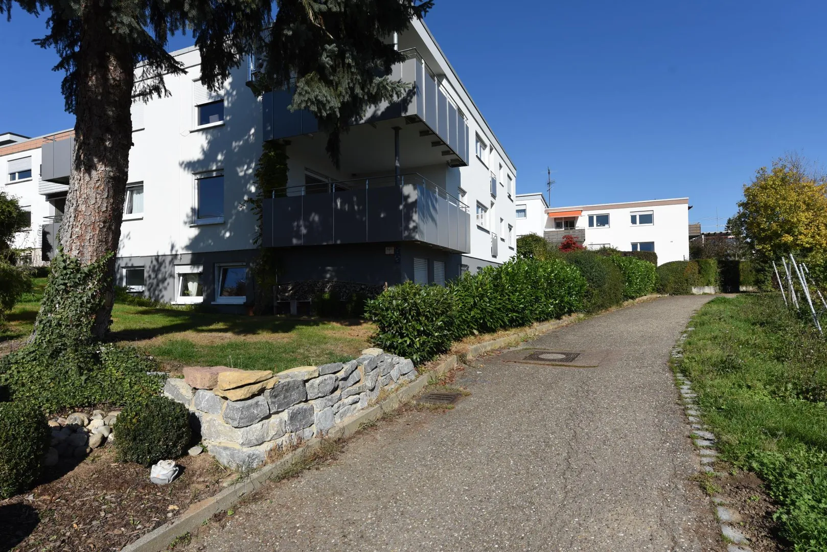 Die Fassade wurde ca. 2014 neu gestrichen. Die Außenanlagen sind sehr gepflegt.