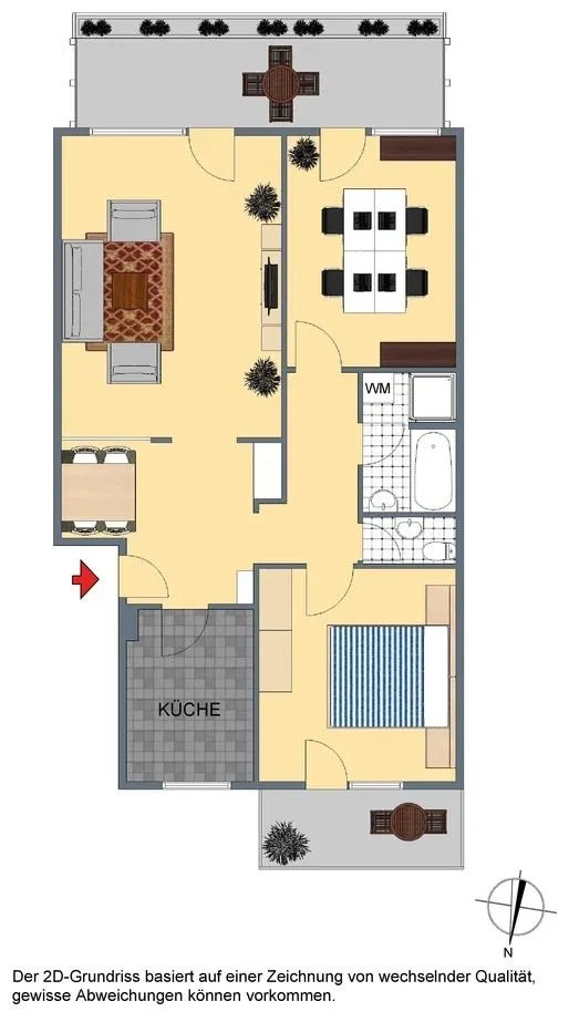 Das Wohn- und das Kinderzimmer sind nach Süden ausgerichtet. Das Schlafzimmer und die Küche sind nach Norden ausgerichtet. Das Badezimmer und das separate WC sind innenliegend.