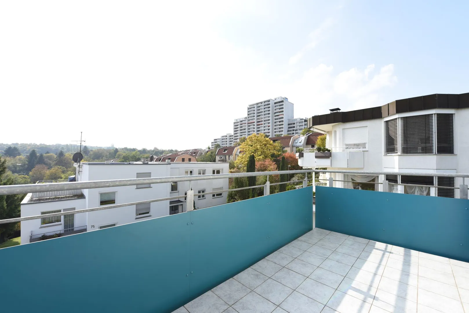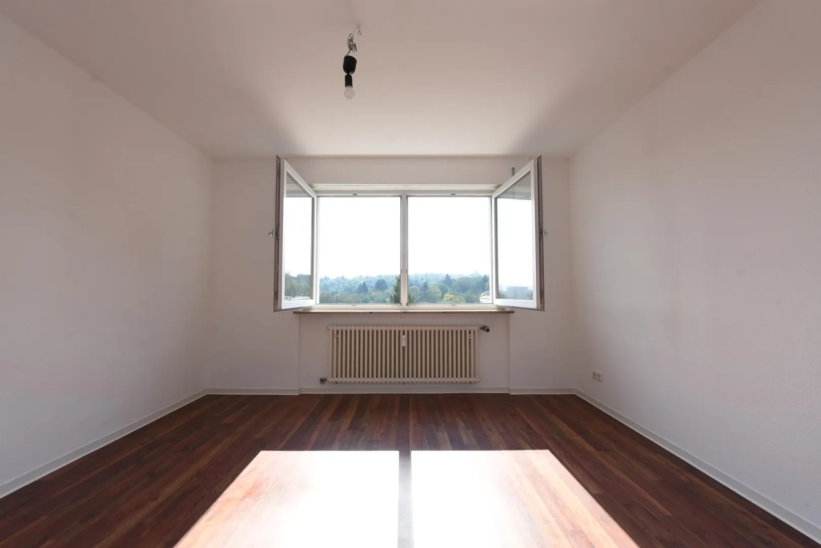 Das Wohnzimmer, das Schlafzimmer sowie der Balkon sind nach Süd-Westen ausgerichtet und verfügen über eine Fernsicht.