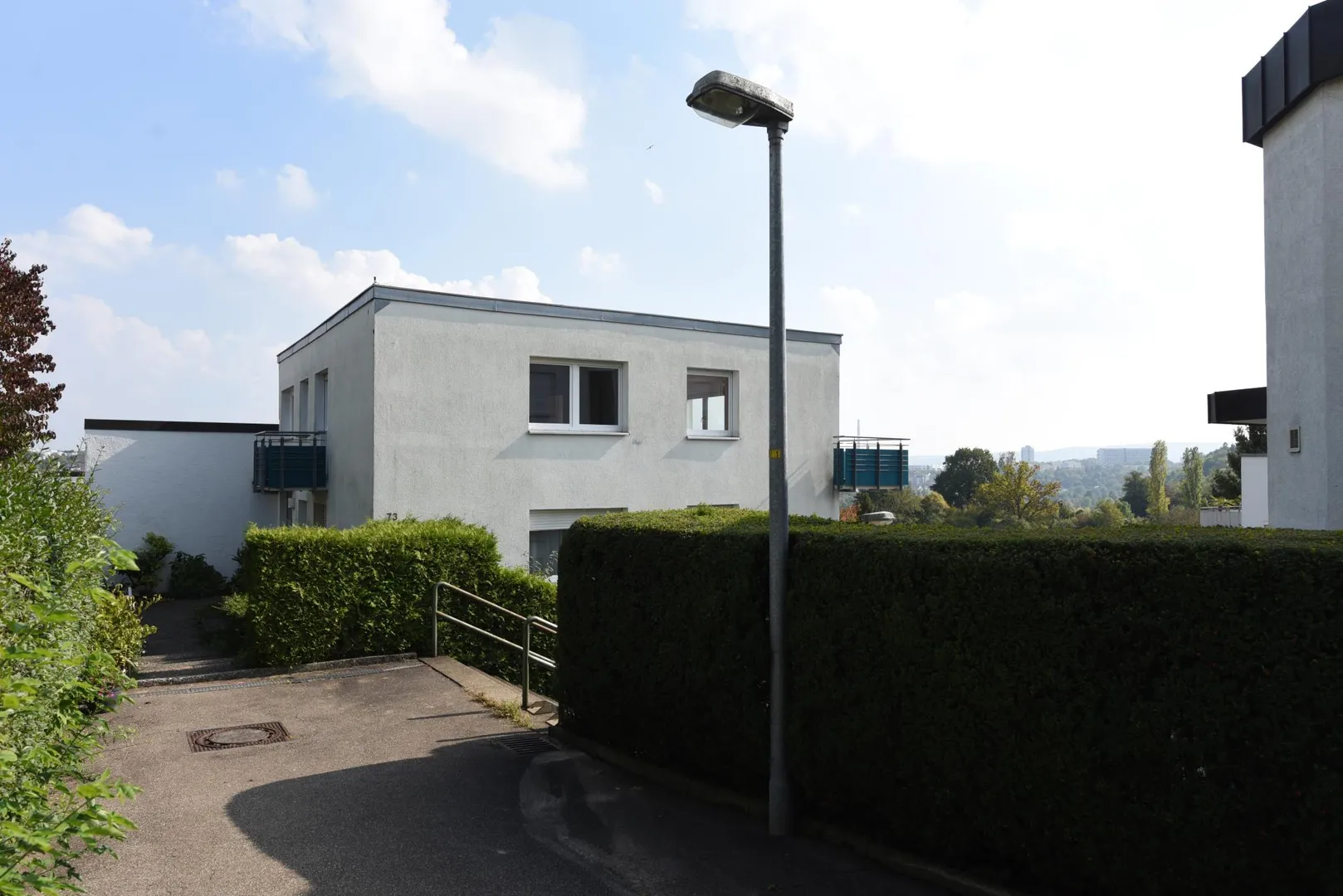 Das Haus befindet sich in Stuttgart-Mühlhausen/Freiberg direkt am Rand von Weinbergen und Schrebergärten. Zum Neckar und zum Max-Eyth-See führt ein direkter Weg runter.