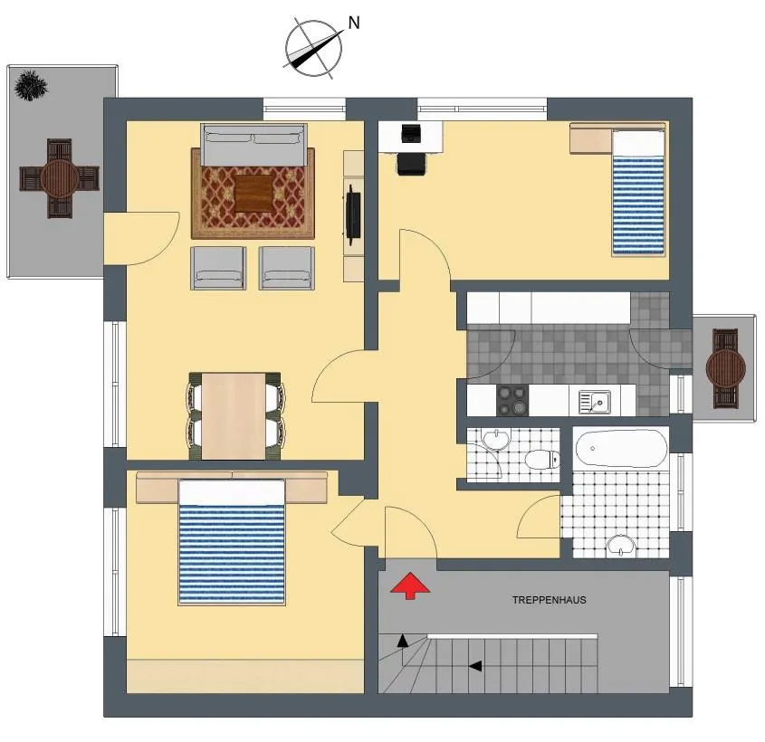 Diese modernisierte 3-Zimmer-Dachgeschoss-Etagen-Wohnung befindet sich im 1. Obergeschoss.